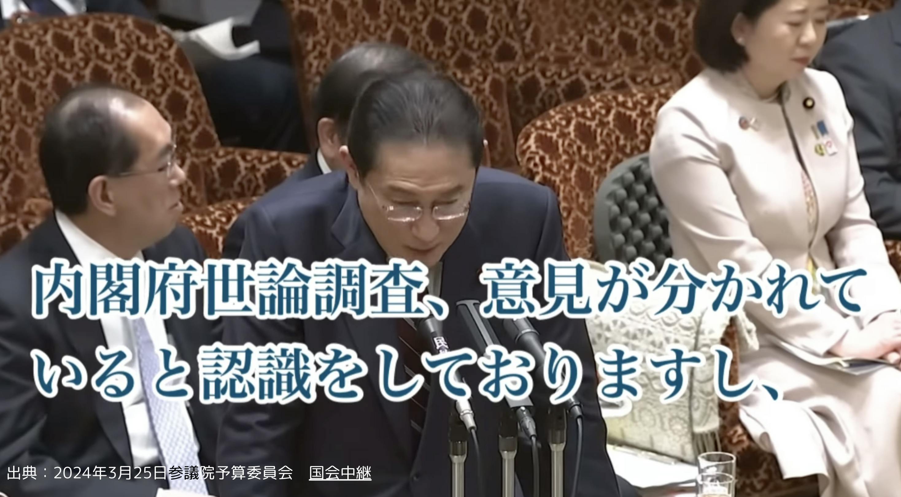 しかし、それでもまだ、岸田総理は「国民の間で意見が分かれている」と、導入に後ろ向きな国会答弁を続けました(出典:2024年3月25日参議院予算委員会)。