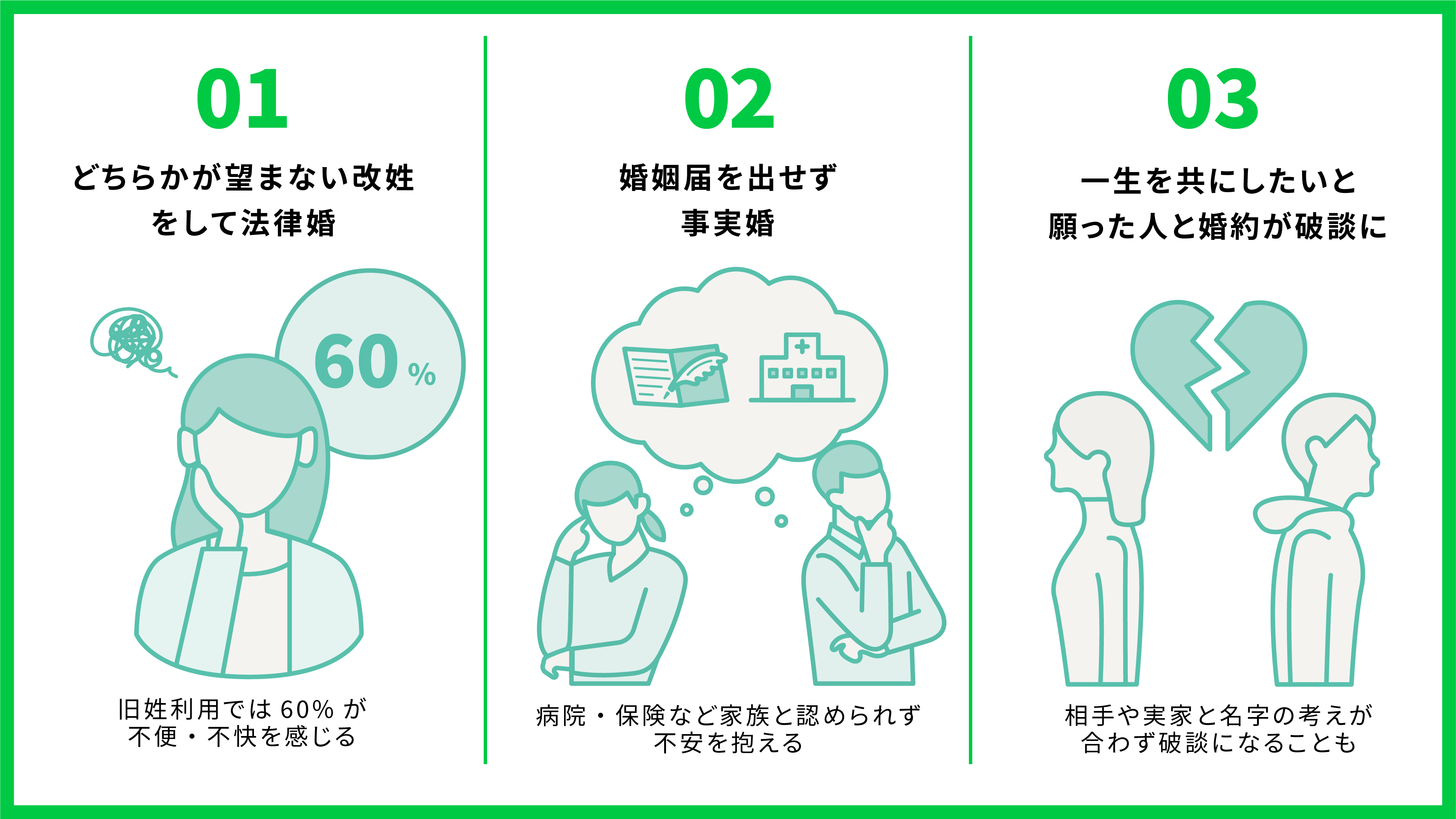 望まない改姓による生きづらさ、不本意な事実婚による不安を解決したい!