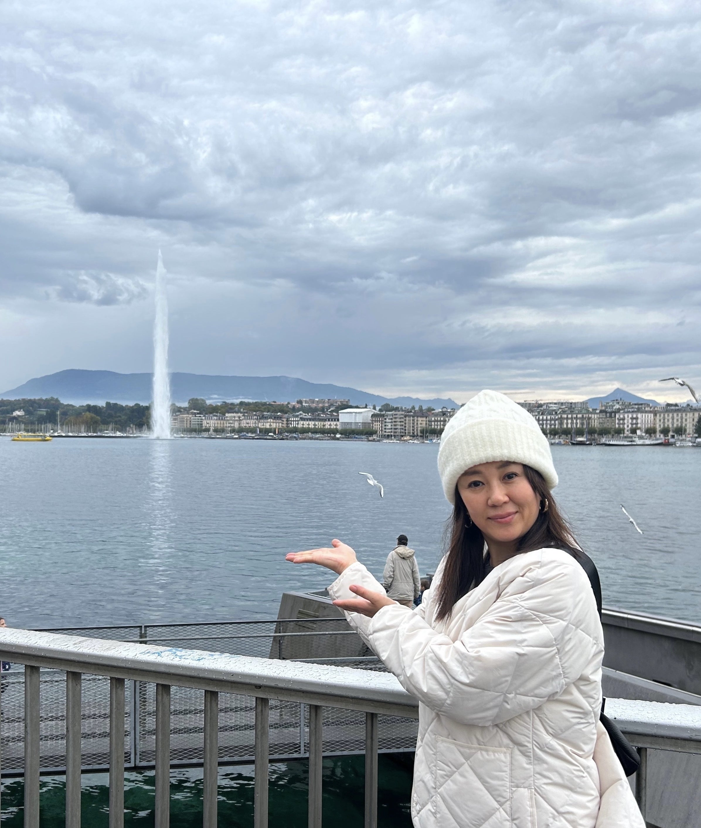皆様のご支援で無事、ジュネーブに到着しました。初日は雨。バスの中から国連ビルを確認できました(TOPの写真です)。レマン湖の噴水も、雨天・曇天です。
