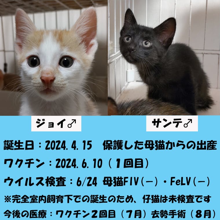 画像の2匹、予定していたトライアルが里親さんの都合によりキャンセルとなったため、里親募集を再開します。