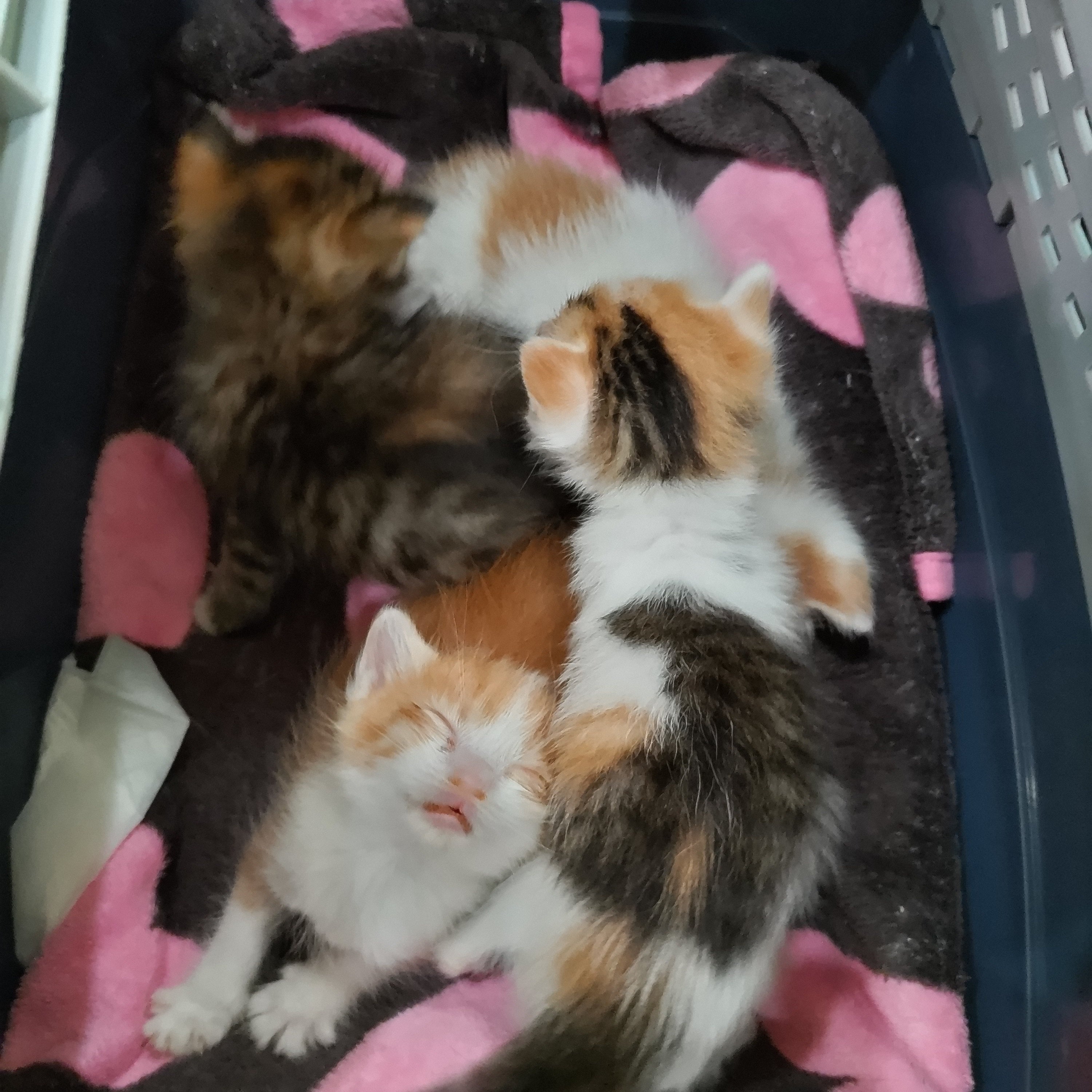 母猫が体調を崩し、仔猫たちも風邪をひいて体重が減り始めたので、急遽ミルクボランティアに預けています。
