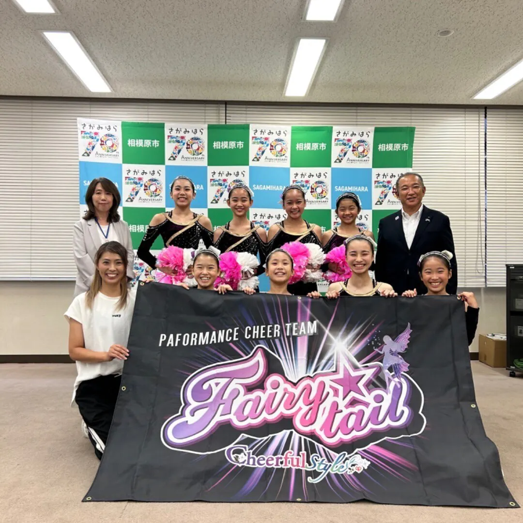 初めての表敬訪問で緊張していたメンバー。面会後にはホッとしてこんな写真もとりました♪