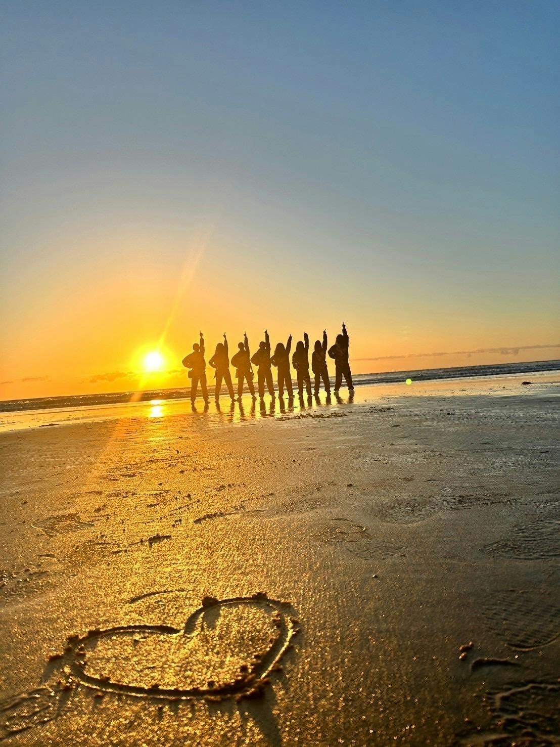 眠たい目をこすりながら海岸に向かっていましたが、綺麗な朝日を見たメンバーはテンションがMAX!!