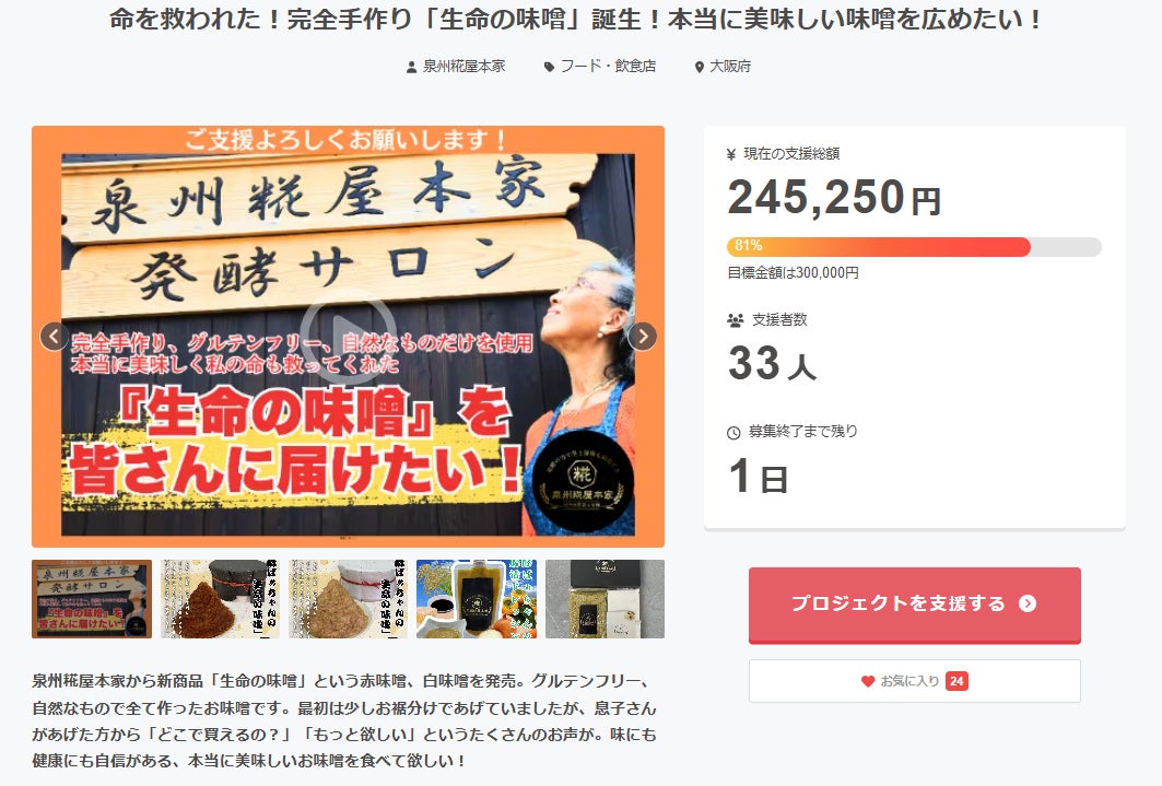 前回逃がした方、スーパーオーガニック味噌「生命の味噌」