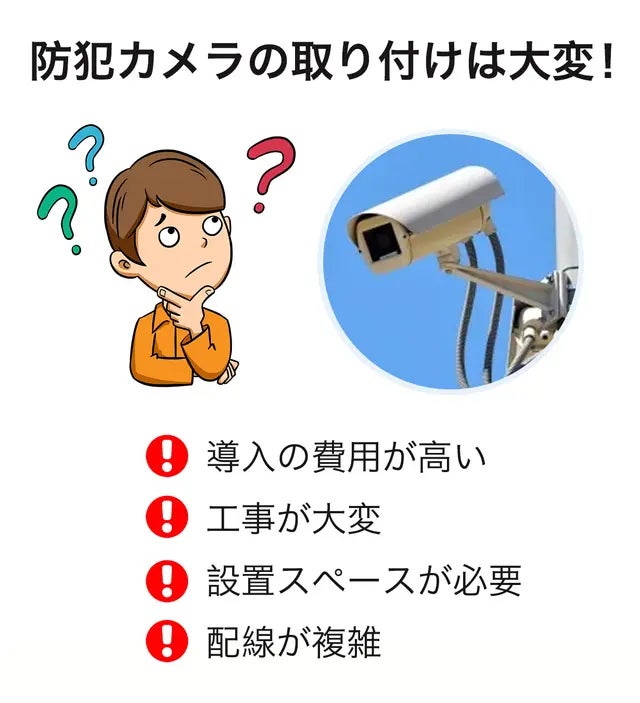 ワイヤレスの小型カメラですので、設置が簡単で配線工事が不要です。