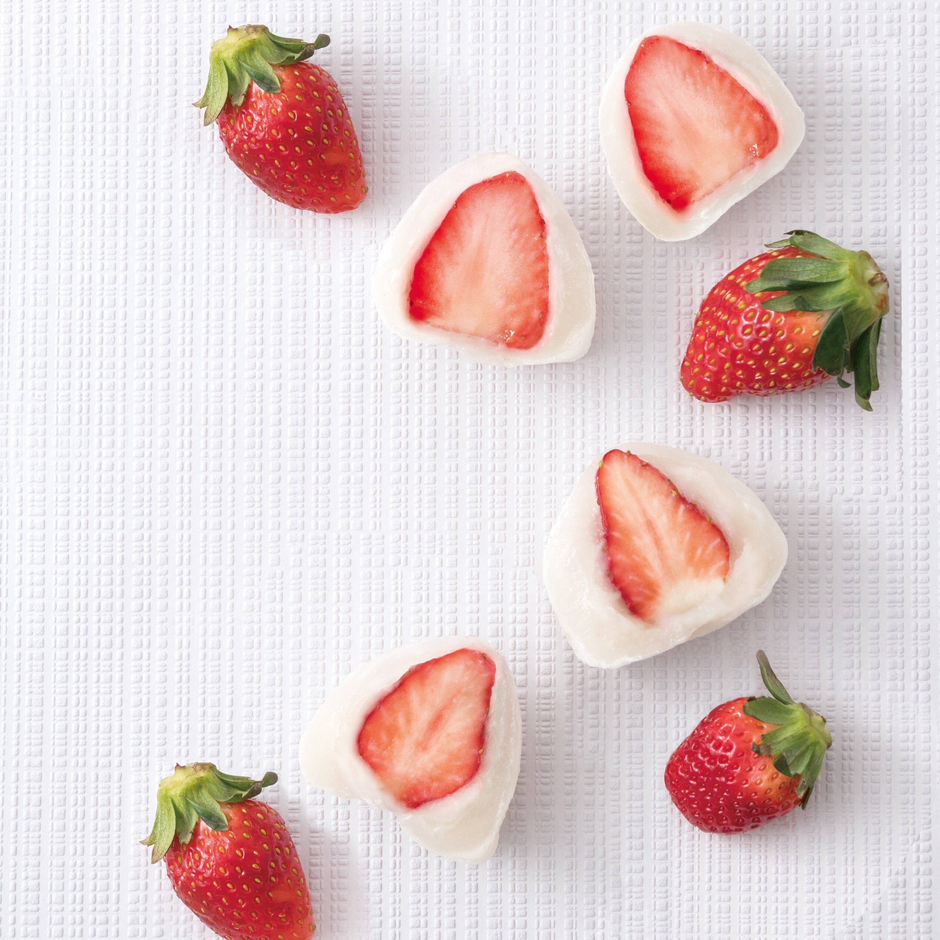 いちご、パイン、キウイが定番ですが、季節限定でスイカや柿などフルーツ大福では珍しいものでも作ります。