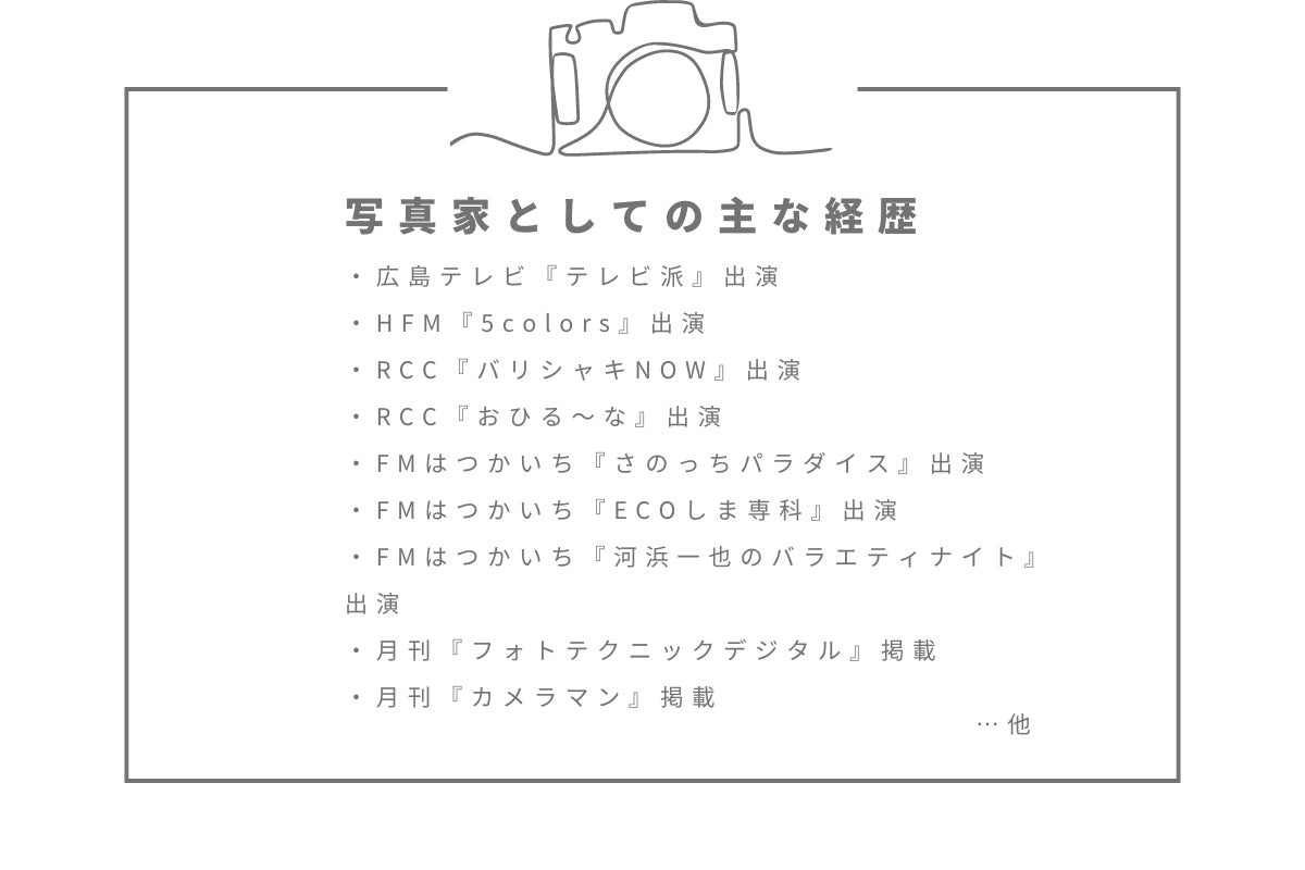 現在はフリーカメラマン、映画脚本家、舞台女優など幅広い活動を行っており、数多くの作品に携わらせていただいてます!
