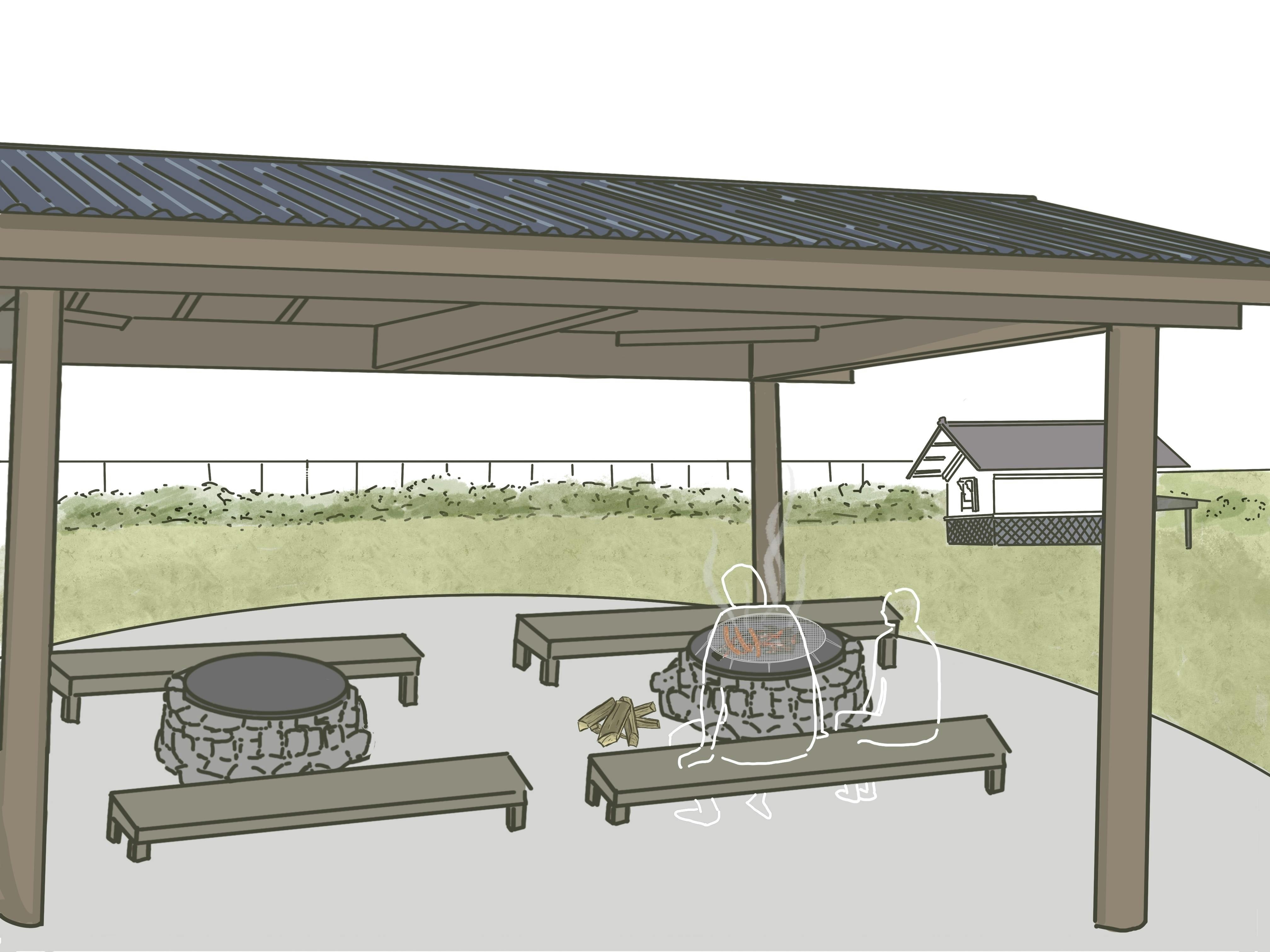 ワインガーデンに建つ東屋は、気の合う皆さんが集い、BBQなどを楽しむ場として計画しております。