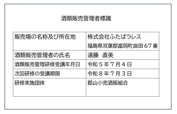 酒類販売管理者標識の掲示