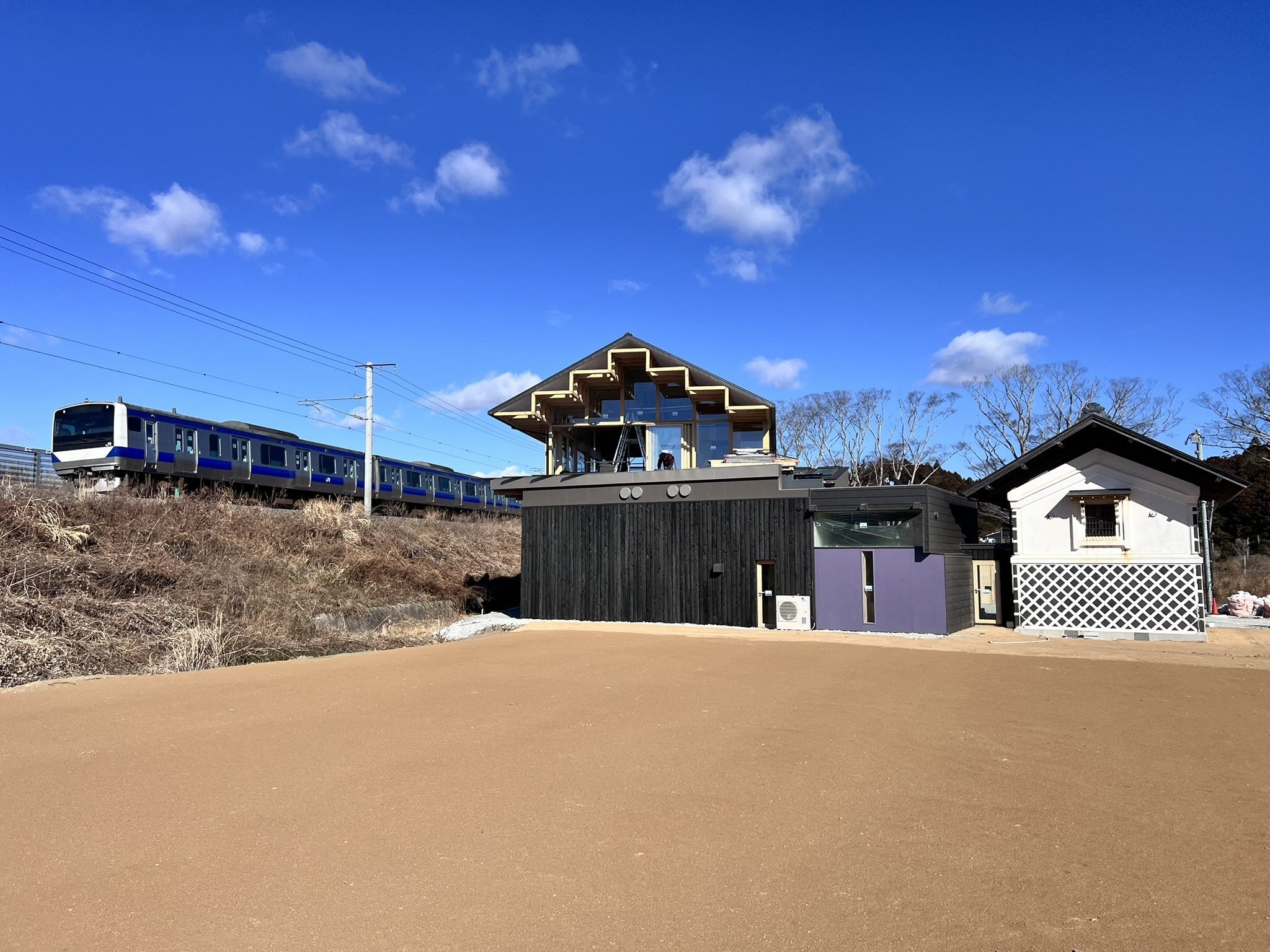 とみおかワイナリーは富岡町のシンボルとなることを目指したデザインをコンセプトに、震災遺構である蔵とJR常磐線の線路の高さに位置するレストラン等を計画しました。震災の記憶を継承するとともに、新たな富岡町の賑わい・観光拠点を目指していきます。