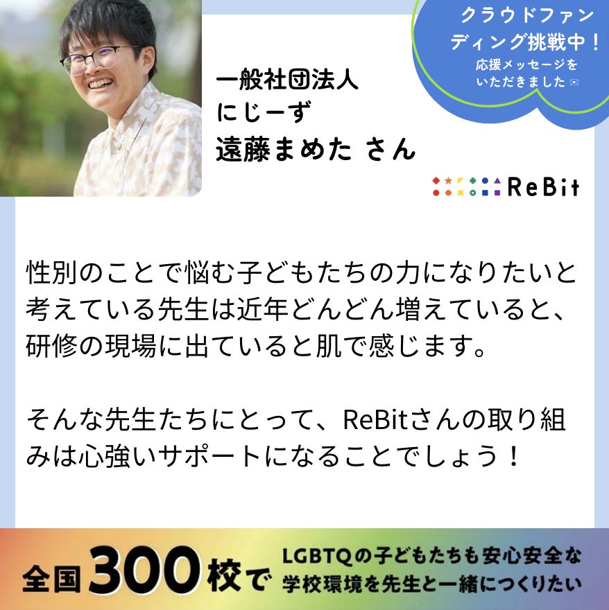 遠藤まめたさん(一般社団法人にじーず)から、応援メッセージをいただきました!