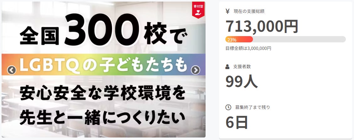 「全国300校で、LGBTQの子どもたちも安心・安全な学校環境を、先生と一緒につくりたい!」というこのプロジェクトを、