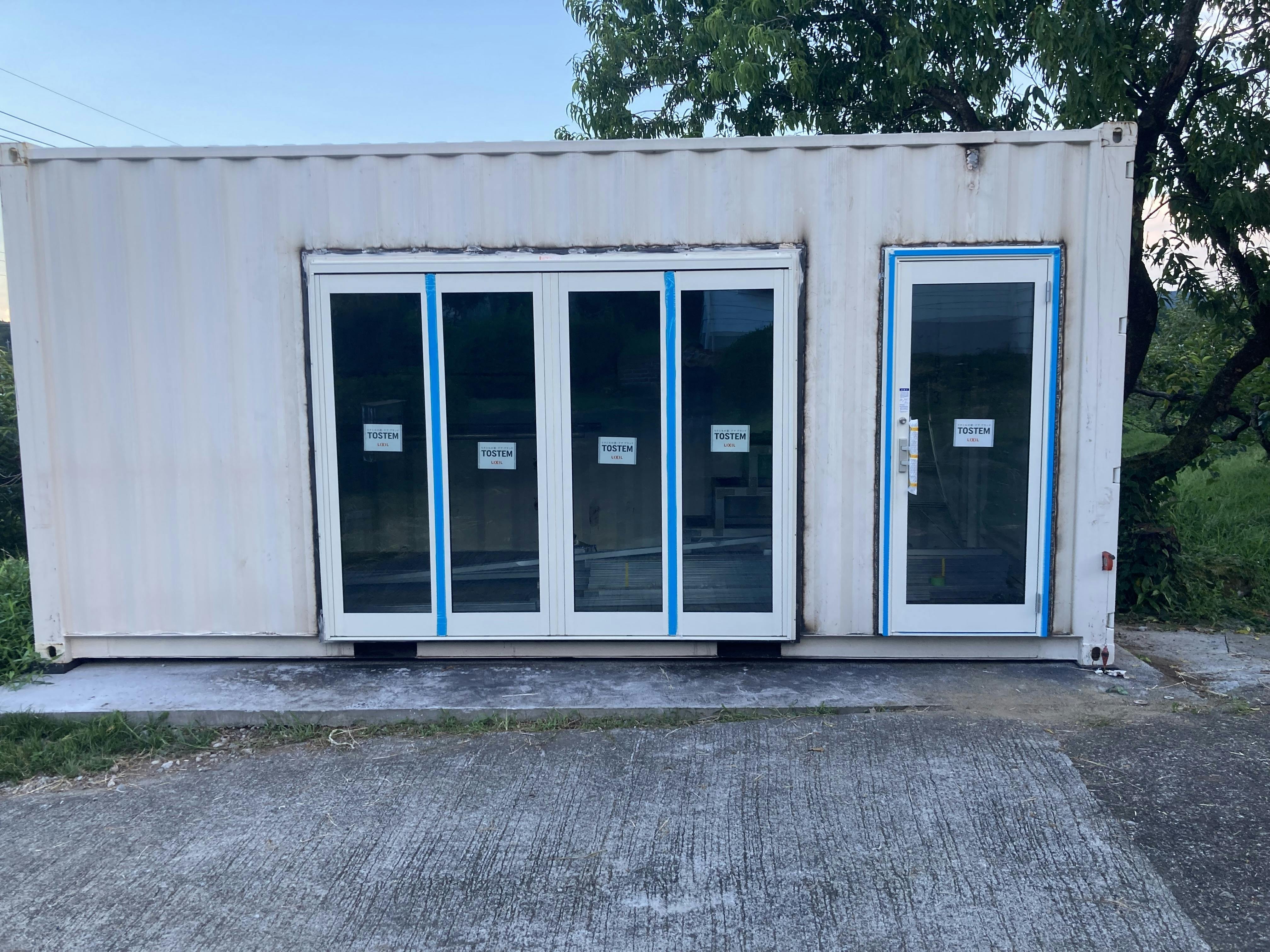 2024/08/06 21:59コンテナハウスの資材発注、納入やレイアウト変更などもあり、コンテナが届いたにも関わらずほぼ1ヶ月間改築作業に移ることが出来ませんでした…その間のご報告更新が出来なかった事、誠に申し訳ありませんでした。しかしながらいよいよ準備が整いまして本日より作業に取り掛かりました。今回からDIYのyoutuberのような報告が続くかもしれませんが、ご容赦くださいwまずはサッシの取付の為、コンテナの開口を行います。スタートから失敗が許されない作業でプレッシャーですw壁を切断します!開口後はサッシの枠を納めるフレームを溶接します。フレームを溶接します少し特殊なサッシを入れる事になったため、こちらで取り付けが行えずサッシ屋さんが取付けなければなりませんでした。そのため枠が納まらなければかなり迷惑をかけてしまう状況となり、ハラハラしながら見守りましたw無事に枠が納まりました!プロは仕事が早いwサッシが取り付けられました!次はドアです。かなり大きめなサッシを入れたのでドアの必要性については悩みましたが、雨天等の悪天候時にサッシからのみの出入りではお客様に不便がかかるかもしれないと思い、ドアの取付を決めました。ドア部分の開口とフレーム溶接を行いました枠もピッタリ納まりました!ドアを取り付けて本日は終了!サッシとドアが取り付けられた事で劇的にお店っぽくなりました!まだまだ完成まで先は長いですが、ここからはペースを上げて作業を進めていきたいと思いますので、引き続きご支援のほどよろしくお願い致します。 もっと見る