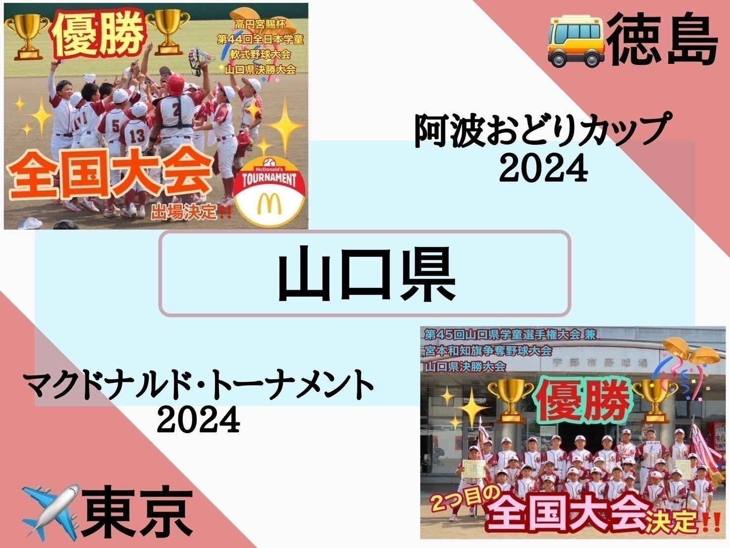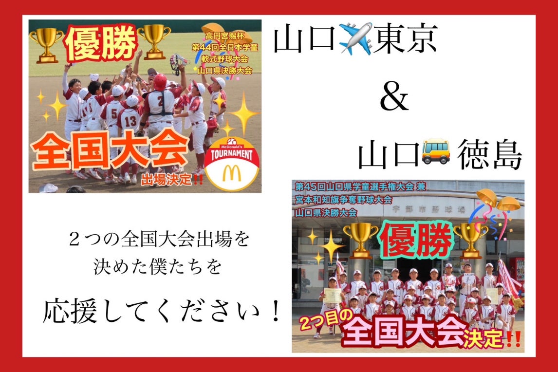 我々下関ドリームスは2024年5月に行われた第45回山口県学童選手権大会兼宮本和知旗争奪野球大会山口県大会と、高円宮賜杯 第44回全日本学童軟式野球大会マクドナルド・トーナメント山口県決勝大会を勝ち抜き、この夏二つの全国大会に出場させて頂きます!!