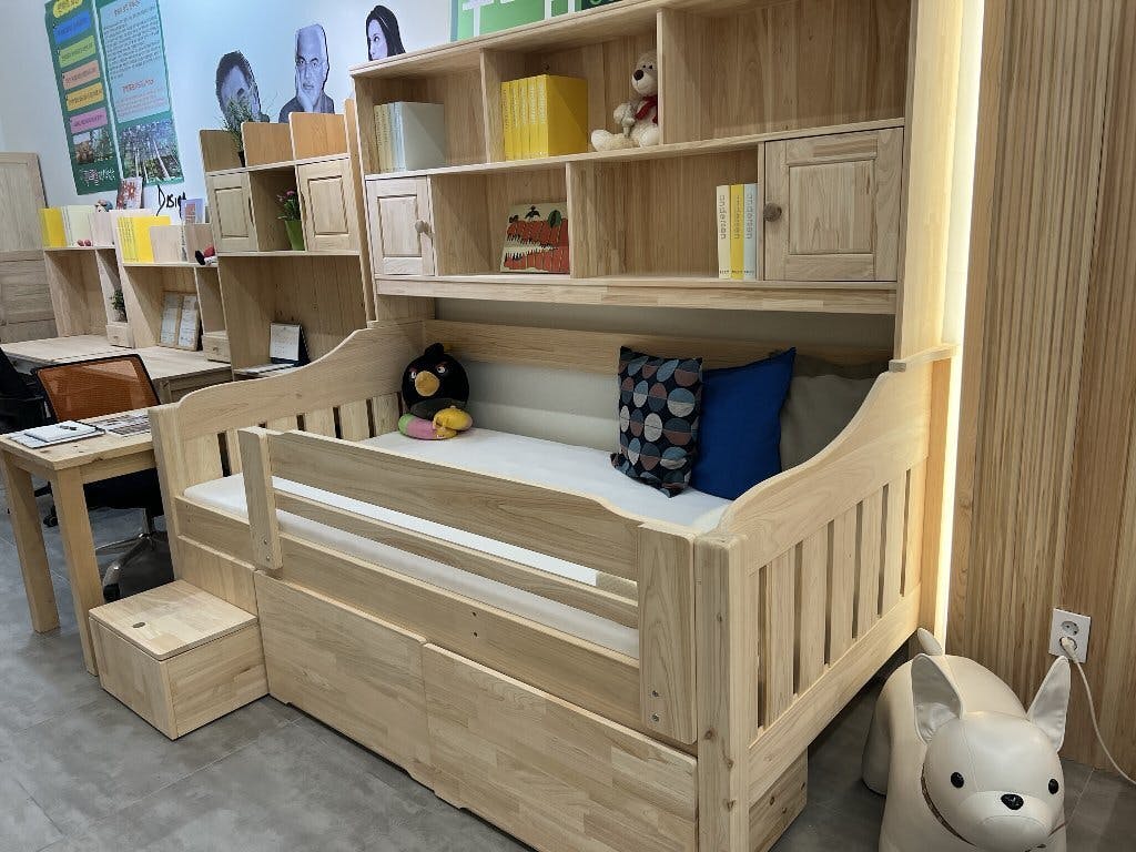日本ではヒノキの家具はあまり知られていませんが、海外では大人気です。色艶の良さや安らぎを与えてくれる香りが人気で、ベッドやテーブルなどによく使われています。ヒノキは水に強く、抗菌効果もあることから、耐久性や保存性も高く、長く使っていただけます。