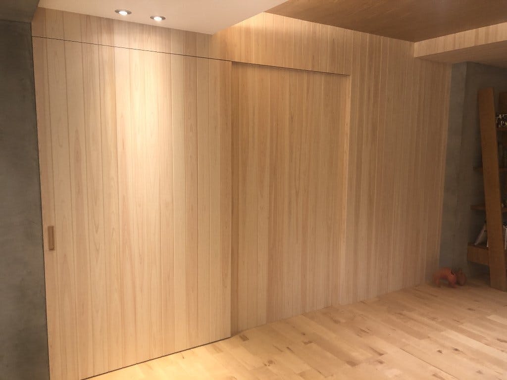 古くからヒノキは宮殿や神社仏閣の建築材として使われてきました。加工も容易で、木材のゆがみ等も少ないことから、高級な内装用材として重用されています。年輪の模様も非常に美しく、辺材は淡いピンク色になっていることから壁板としても大変好まれ、安らぎの空間を演出します。