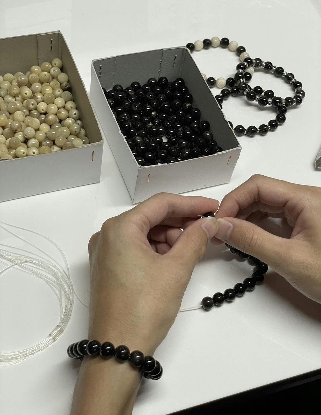 昔ながらの職人技を活かし、一本一本手作りで丁寧に制作しています。そのため、それぞれのブレスレットには微妙な違いや風合いがあり、他にはない唯一無二の一点ものとしてお楽しみいただけます。
