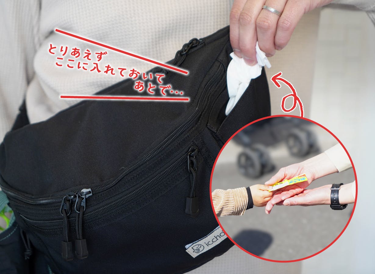 そんな時に「左右にある、とりあえずのポケット」が大活躍します!!