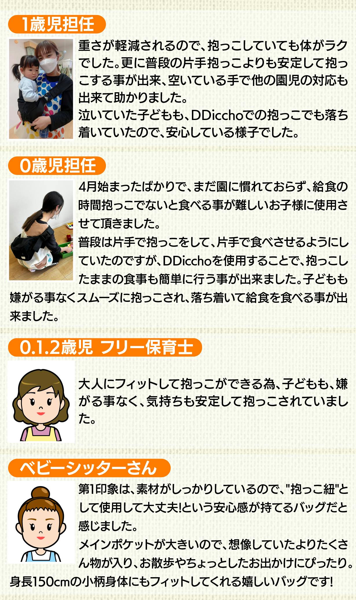 このお悩みを解決すべく、保育士×ママが1年以上の試行錯誤のもと、抱っことバッグが1つになったHug育バッグ「DDiccho」を完成させました!!