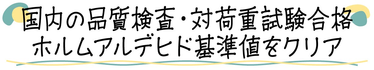 耐過重試験30㎏合格、ホルムアルデヒド検査にもクリアし、赤ちゃんに優しいつくりになっています。安心してお使いくださいませ。