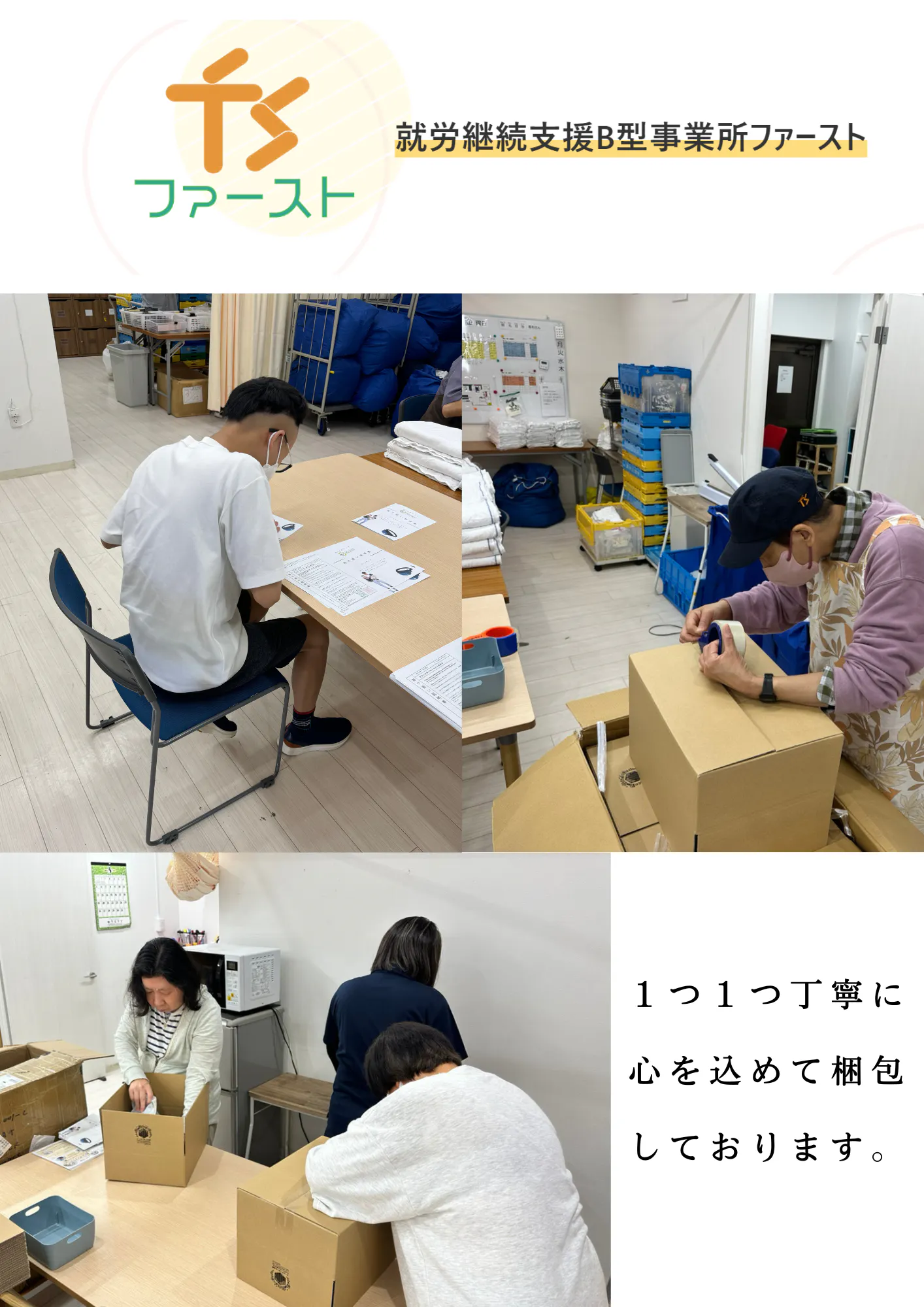 2024/10/29 15:42昨日皆様への発送が完了致しました。長い間お待ち頂き誠にありがとうございました。梱包、発送作業は、『就労継続支援B型事業所ファースト』さんにご協力を頂き完了させて頂きました。1つ1つ心を込めて丁寧に作業を進めて下さっております。私が顔を出すと、皆さん笑顔で迎えて下さり、黙々と梱包作業に取り組んで下さいました。皆様の暖かい応援とご協力にて、Hug育バッグを皆様の元にお送り出来る事、大変感謝致します。使用方法や、何かお困り事がございましたら、いつでも公式LINEにてご連絡お待ちしております^^『就労継続支援B型事業所ファースト』DDiccho公式LINE引き続きよろしくお願い申し上げます。 もっと見る配送について