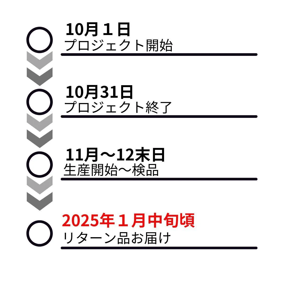※本文中に記載させていただいたスケジュールは、あくまでプロジェクト公開時点の予定です。クラウドファンディングの性質上、配送遅延のおそれがございます。