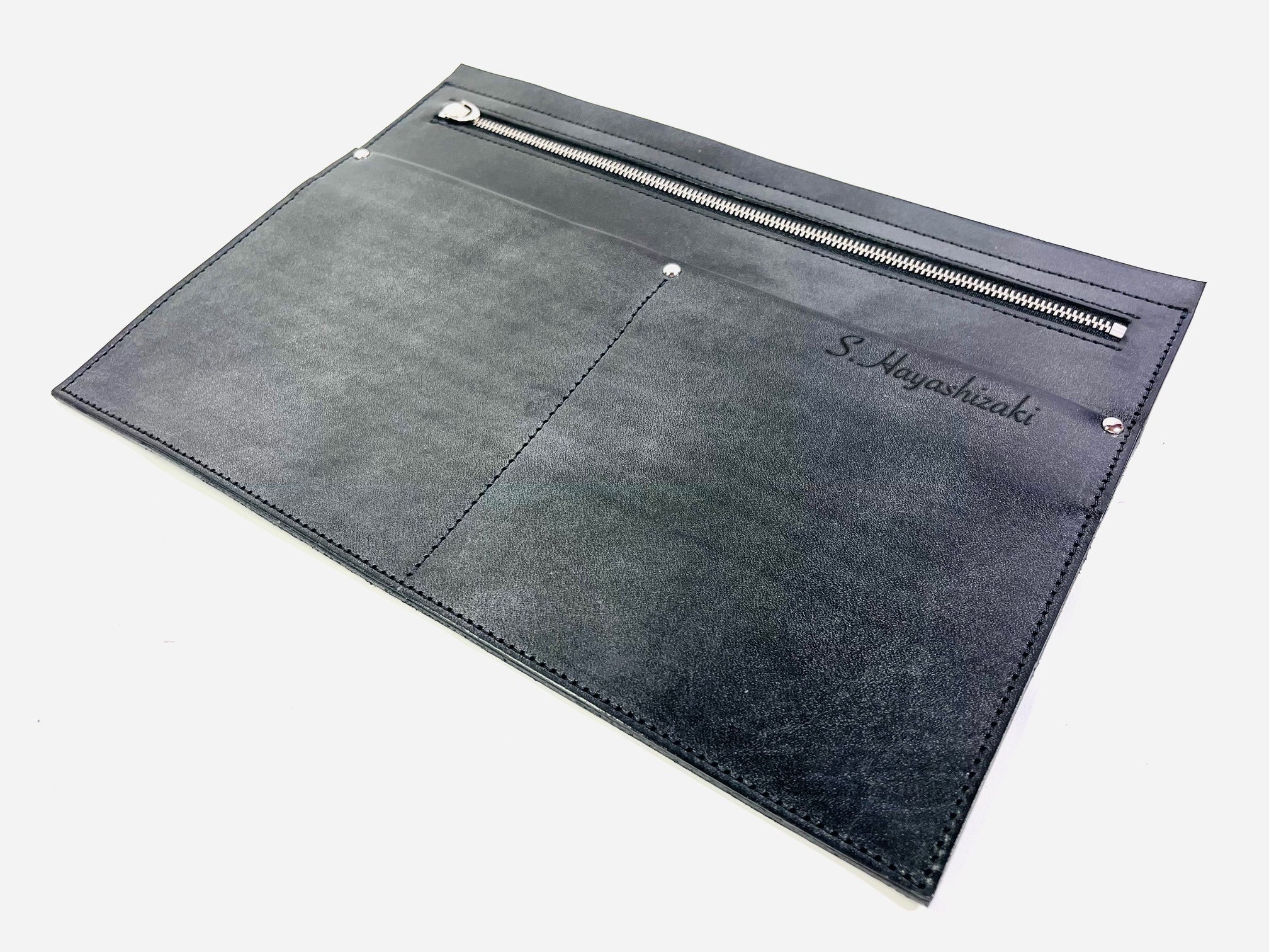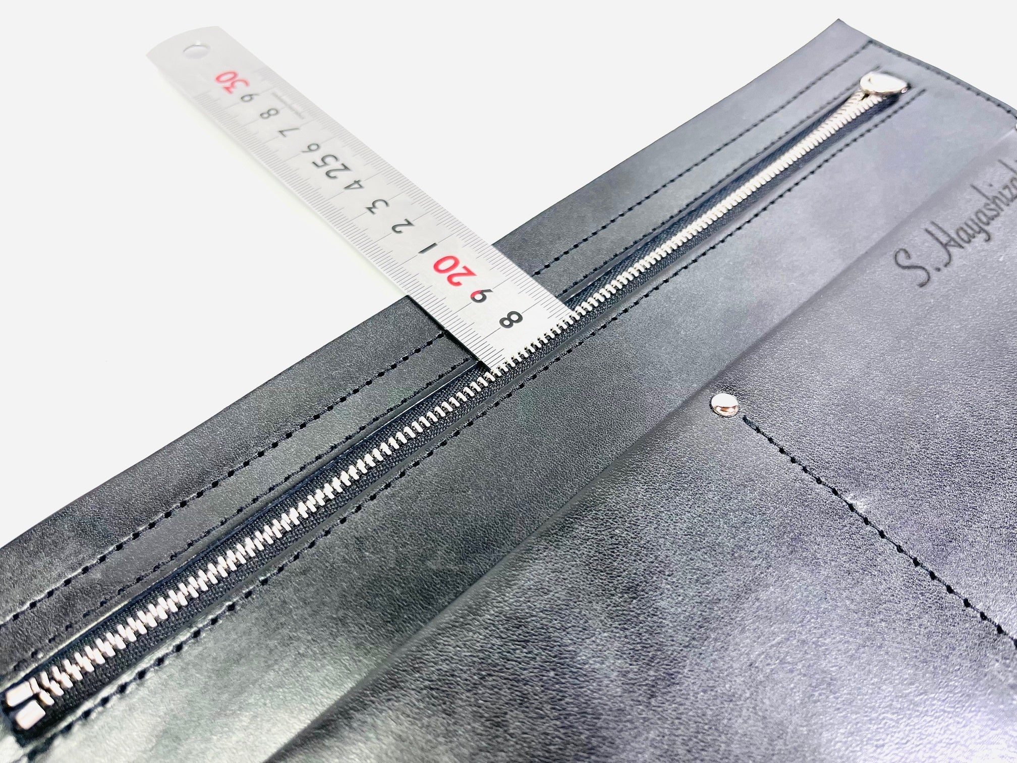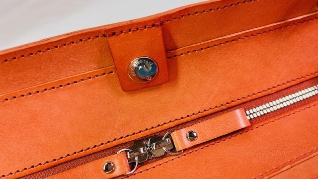 ファスナーは、通常のエクセラファスナーを更に磨き込んだ両開き用のエクセラファスナーを使用。スムーズな開閉が可能になっております。ファスナーの見返しパーツも十分な寸法を取っていますので閉めた時にも収納力が落ちない設計になっております。ダブルスライダーの引手も大き目な共革仕様なので開閉もスムーズに行えます。