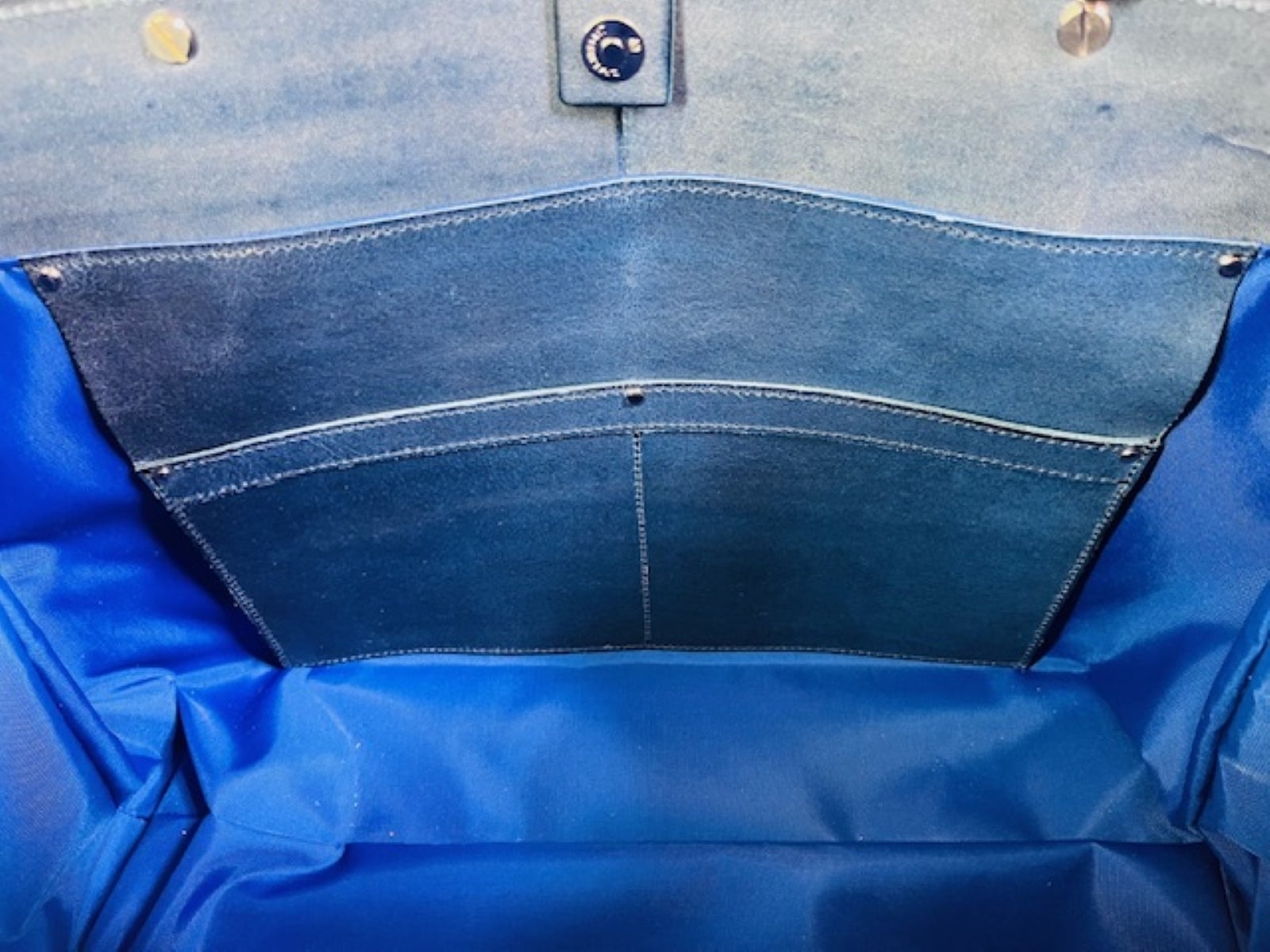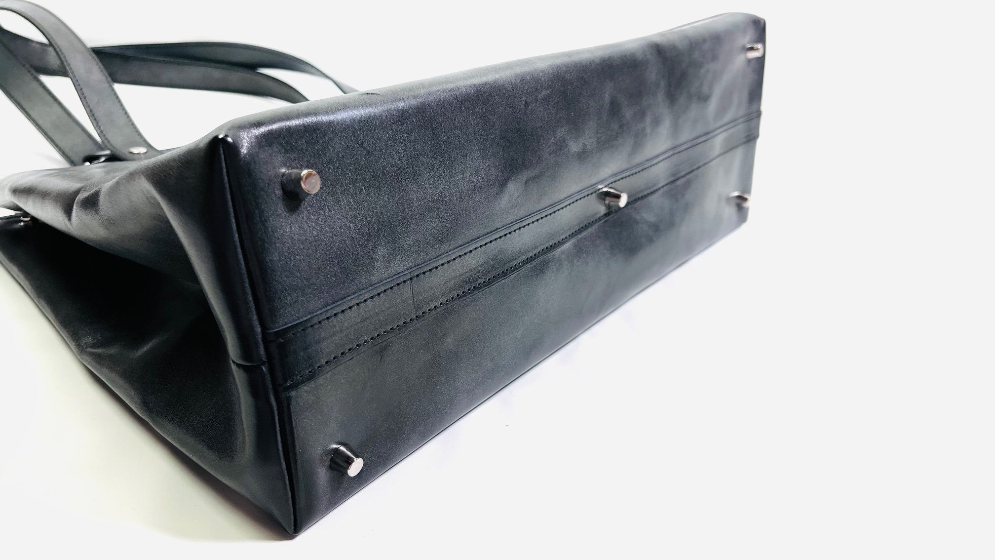 ■底鋲は、四方の角とセンターに合計5個所に取り付けております。一般的なバッグは、四方の角に4個所取付が主流ですが、、、大容量のバッグになるため5個所に取り付けております。