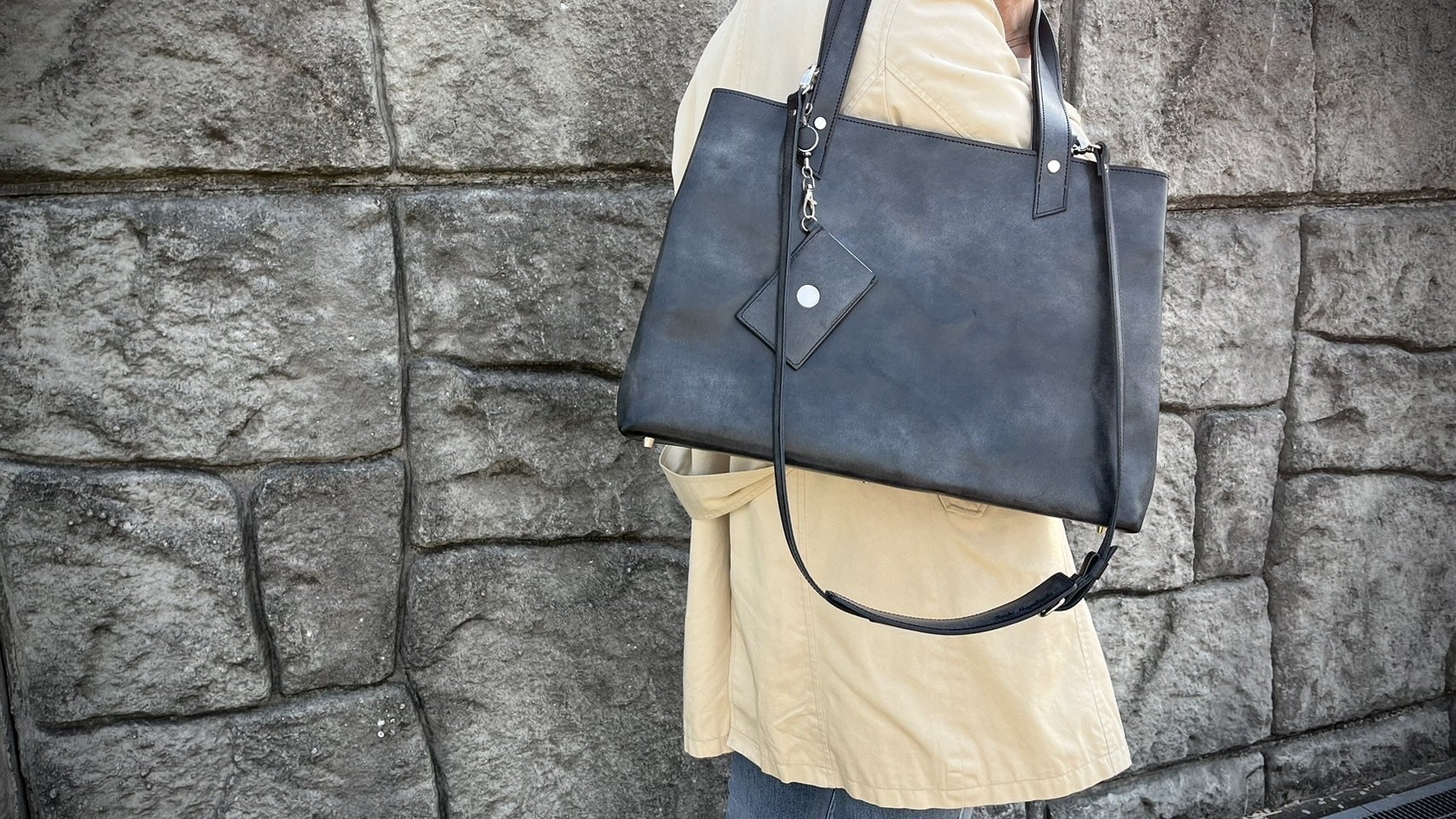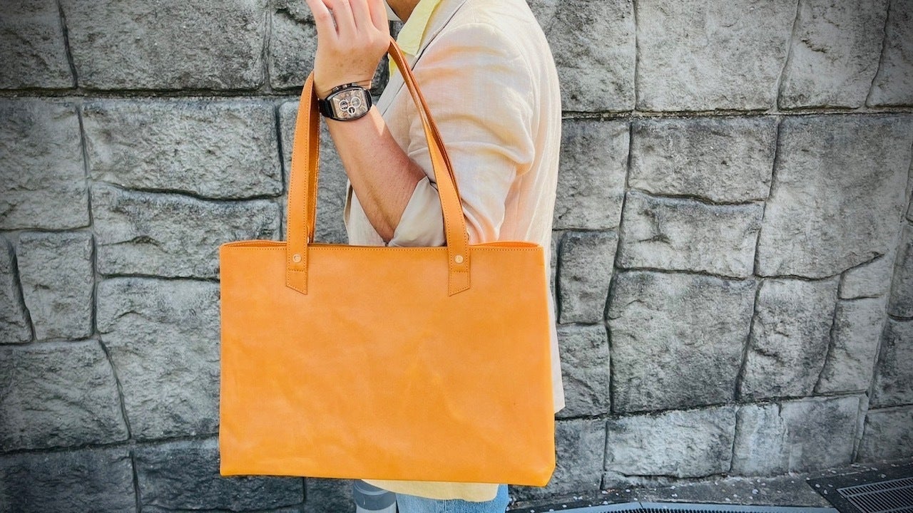 国内産牛ヌメ革を贅沢に使用した「スタイリッシュなトートバッグ」