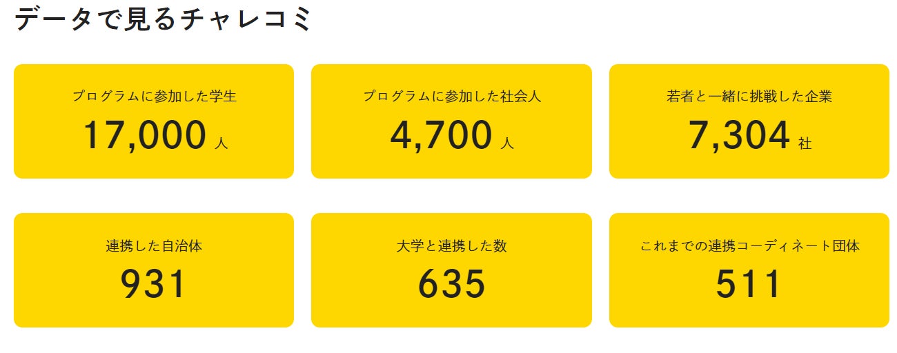 そんな若者たちの挑戦の現場を生み出しているコーディネート団体同士が連携して、日本全国に挑戦が生まれるための環境づくりをしてきたのが「チャレコミ」です。