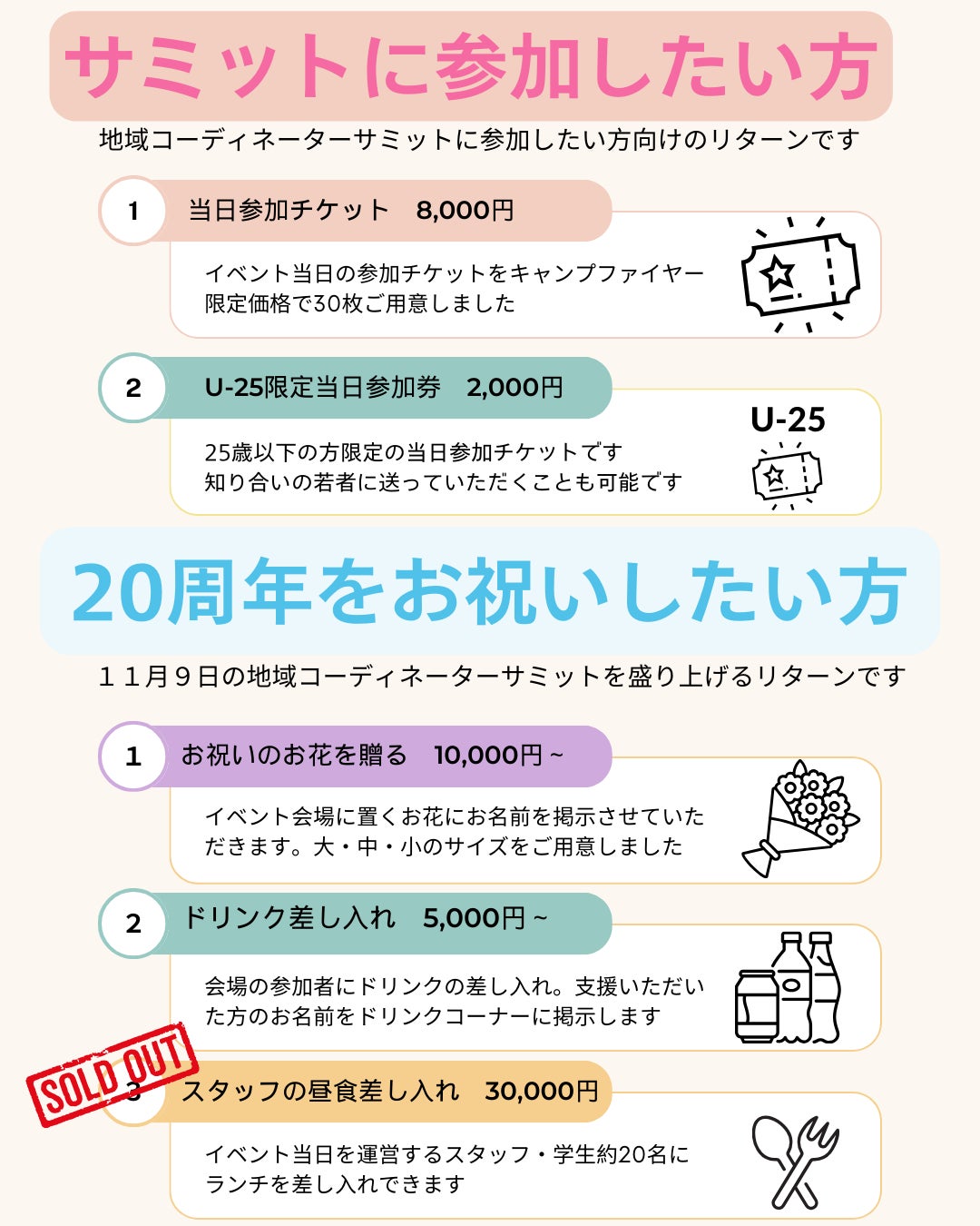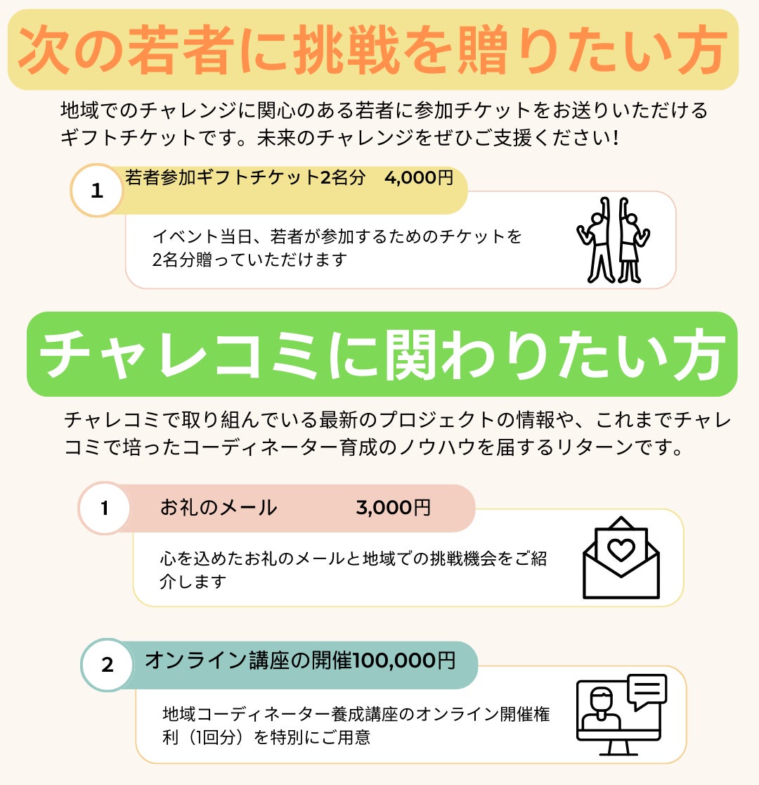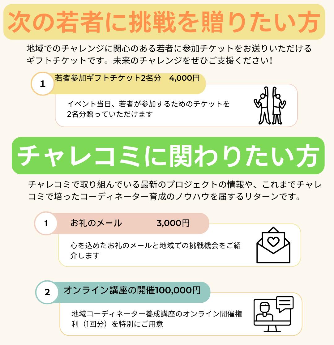 次の若者たちに挑戦の機会を提供するリターンもご用意しました。
