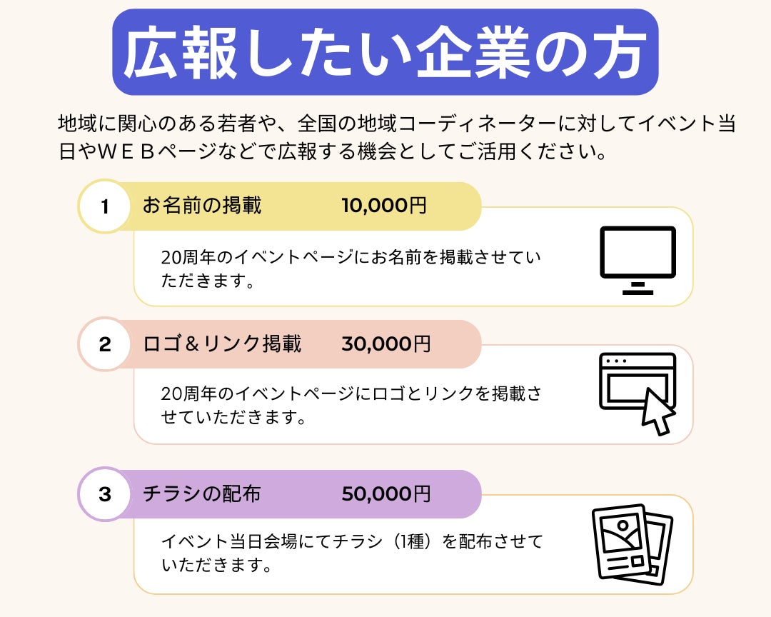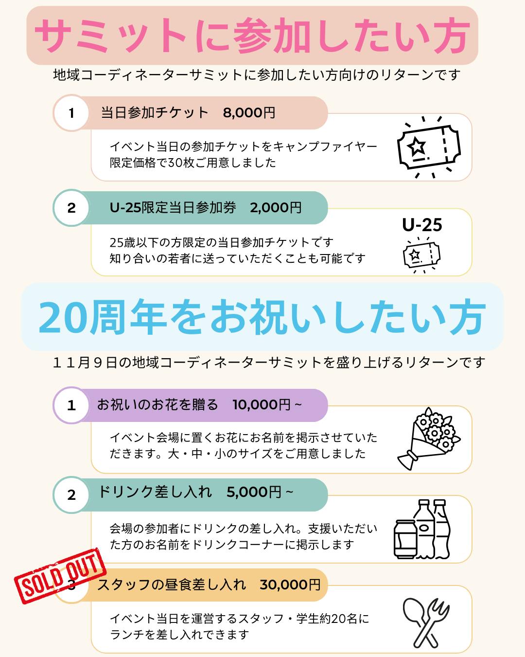 本プロジェクトで集まった資金は、20周年記念イベントの開催費用の総額150万円の一部として使わせていただく予定です。