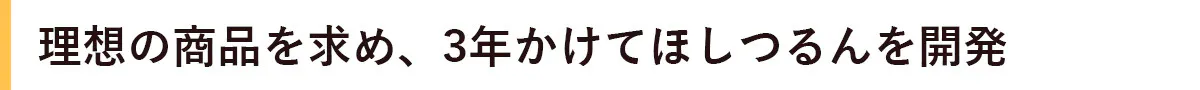 そこで「理想の商品が世に無いなら、自分で作らないとしゃーない!」と一念発起し、3年をかけて完成したのが「HOSHITSURUN ほしつるん」なのです。