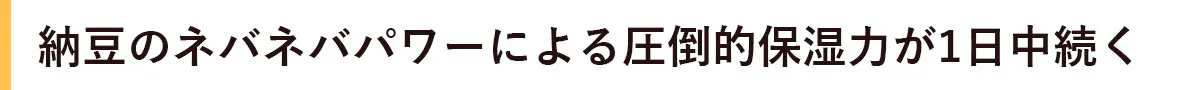 ほしつるんの保湿力は、ポリグルタミン酸という納豆のネバネバ成分です。顔や体に塗るものに納豆!?と驚かれる方もいるかもしれません。でもこの成分が、ヒアルロン酸を超える圧倒的な保湿力を持っているのです。