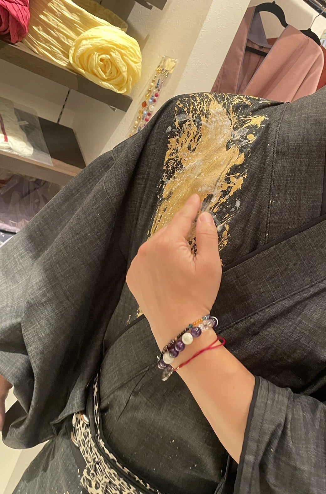 私がいつも着ている大好きな着物、SOURAさんの着物に書道アートでデザインをさせていただく機会をいただきました。