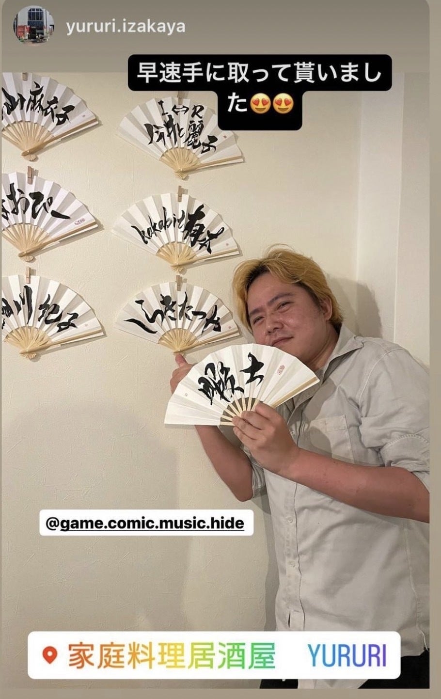 いいですね、居酒屋YURURIの壁に飾られた扇子!