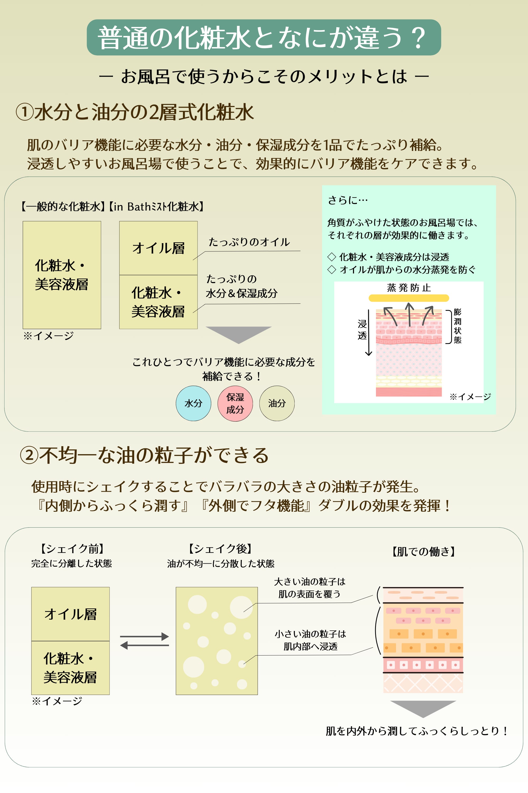 そこでエルフェリーチェ in Bath ミスト化粧水では、「入浴中」に使える商品にしました。