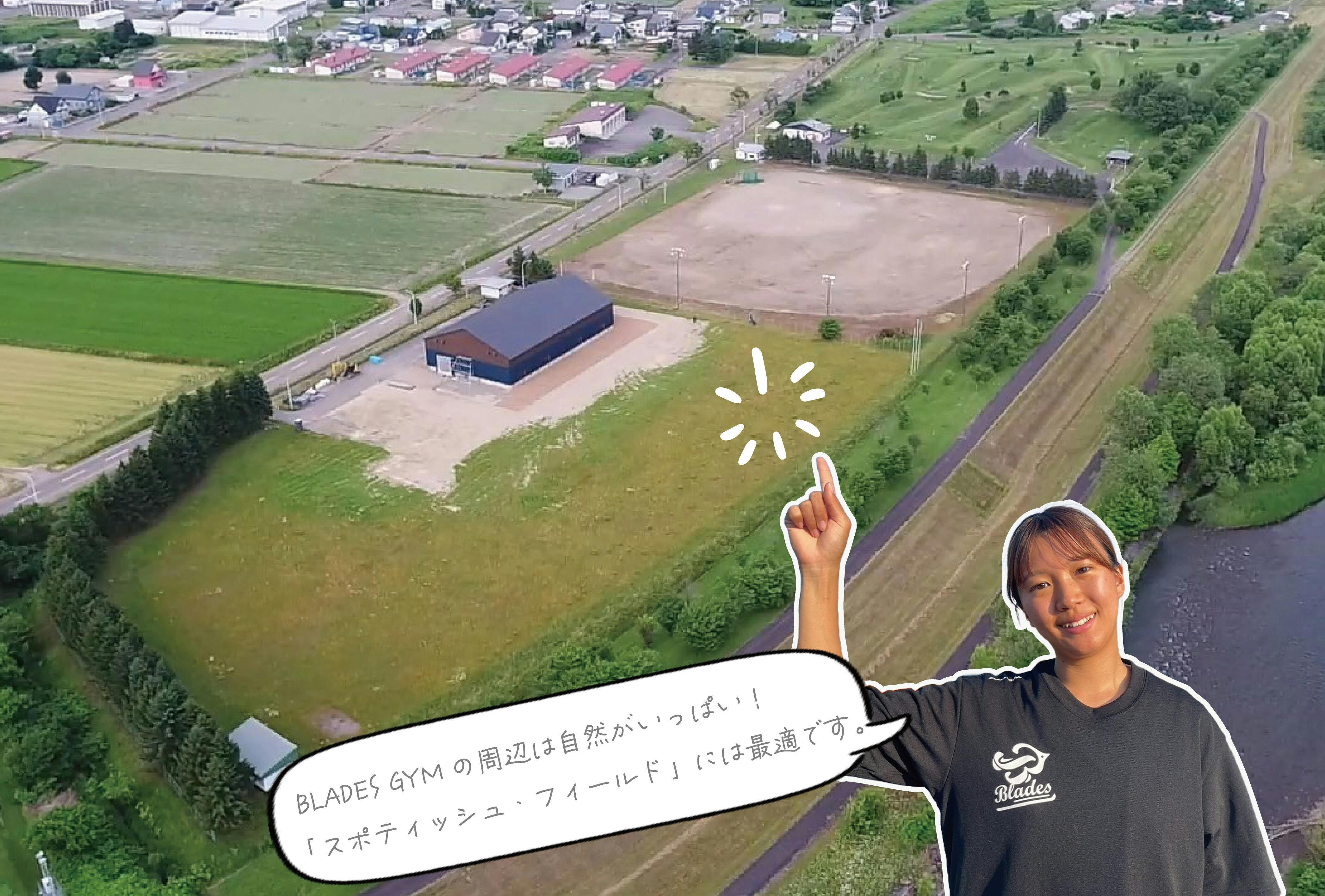 BLADES-GYMが建設される場所は、総面積1haのグラウンドで、隣に野球場やパークゴルフ場があり、すぐ側を幻の「イトウ」や「ニジマス」が釣れることで有名な天塩川が流れていて、その堤防はローラースキーのコースになっています。
