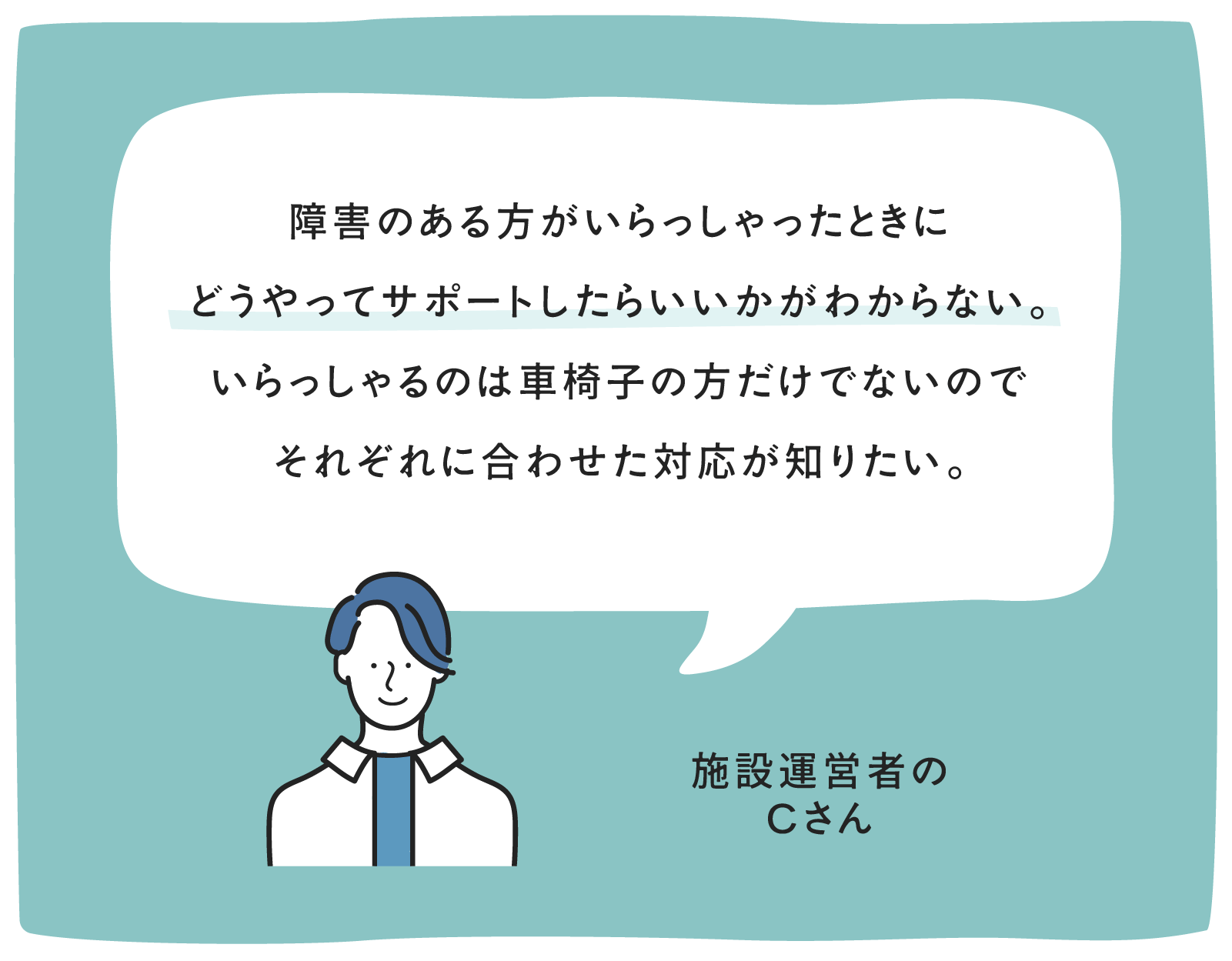 高齢者や障がい者の方々、小さなお子様連れの方はもちろんですが、自分や周りの方が事故に遭ったり、病気になったりした時のことを考えると、今は周りにそういう状況の方がいない方にとっても、きっと誰にとっても無関係な話ではありません。