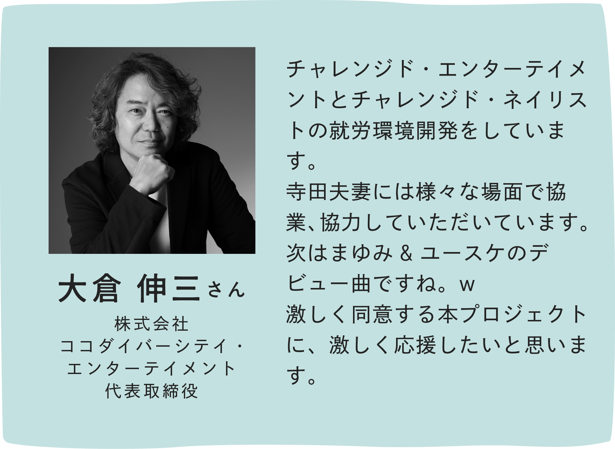 専門家や事業家の方など、様々な活動をされているたくさんの方々からも、MinQ(みんきゅ〜)の活動を応援いただいています。(いただいた応援メッセージを一部ご紹介させていただきます。)