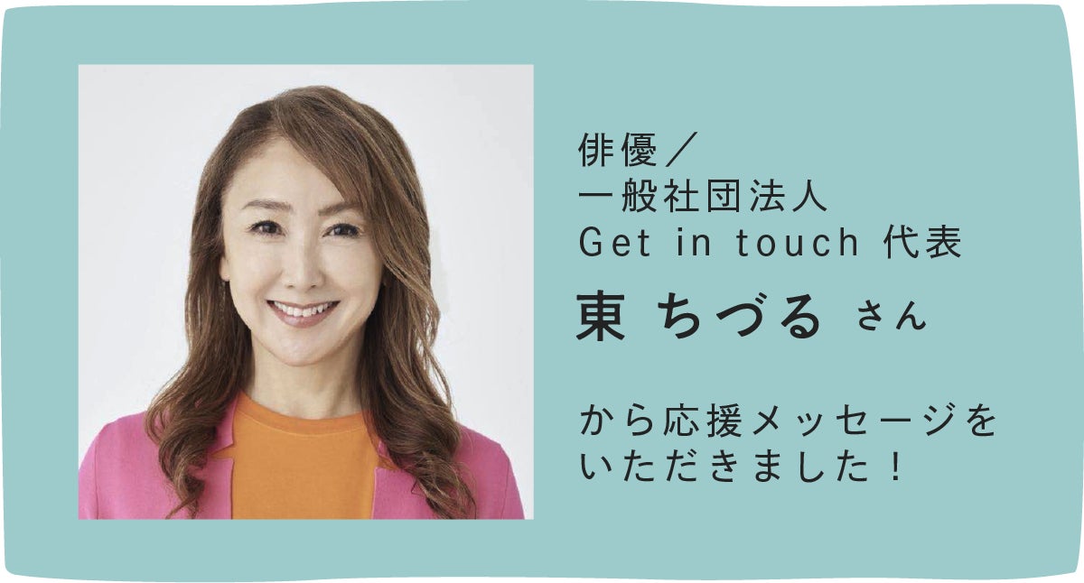 俳優で一般社団法人Get in touch代表の東 ちづるさん より応援メッセージをいただきました!