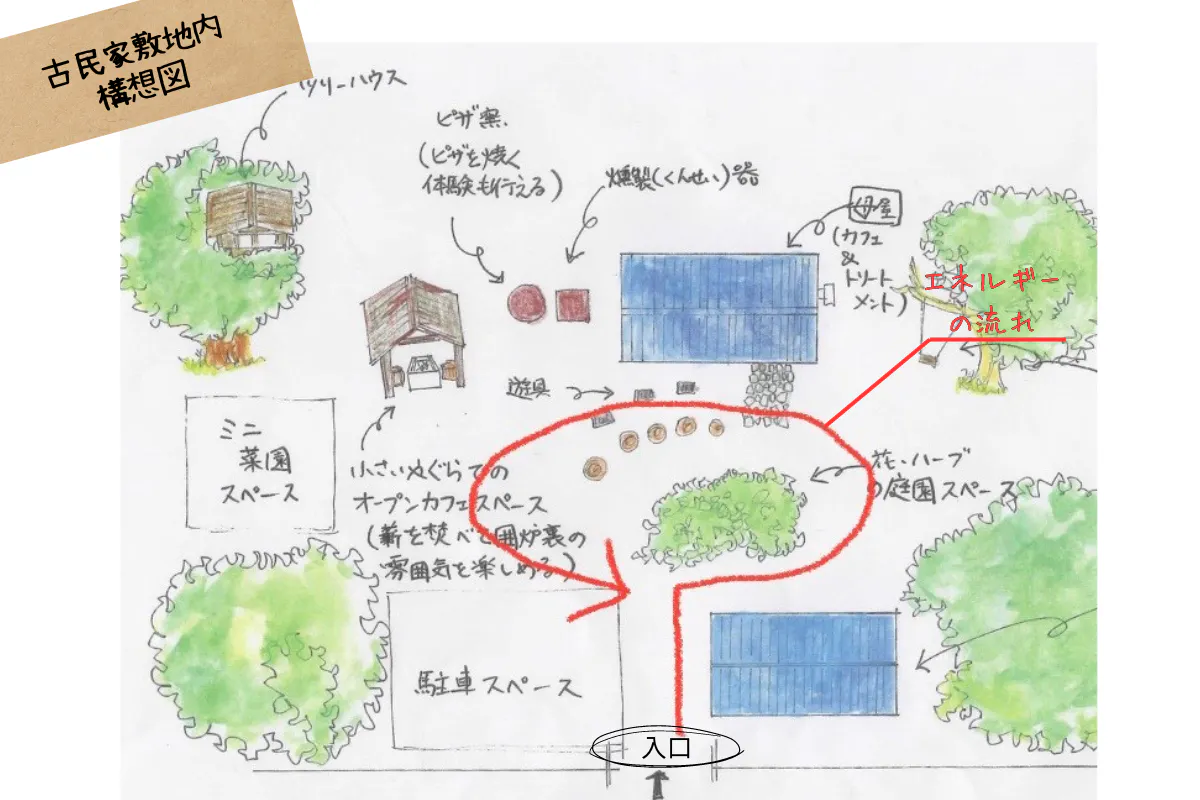 古民家では夫が自家製ベーコンを使った軽食喫茶を営み、妻が喫茶部門を手伝いながら2階でオイルトリートメントマッサージと融合したエネルギーワークを行う予定です。