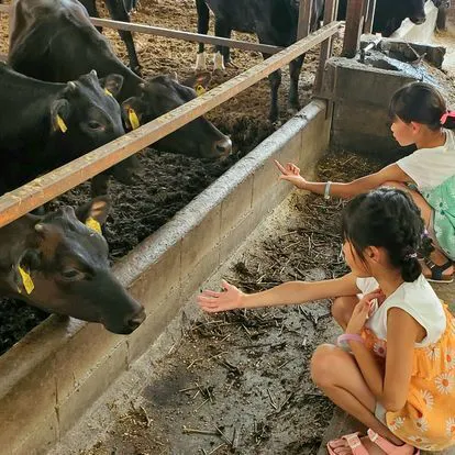 子どもたちと一緒に牛舎のお掃除