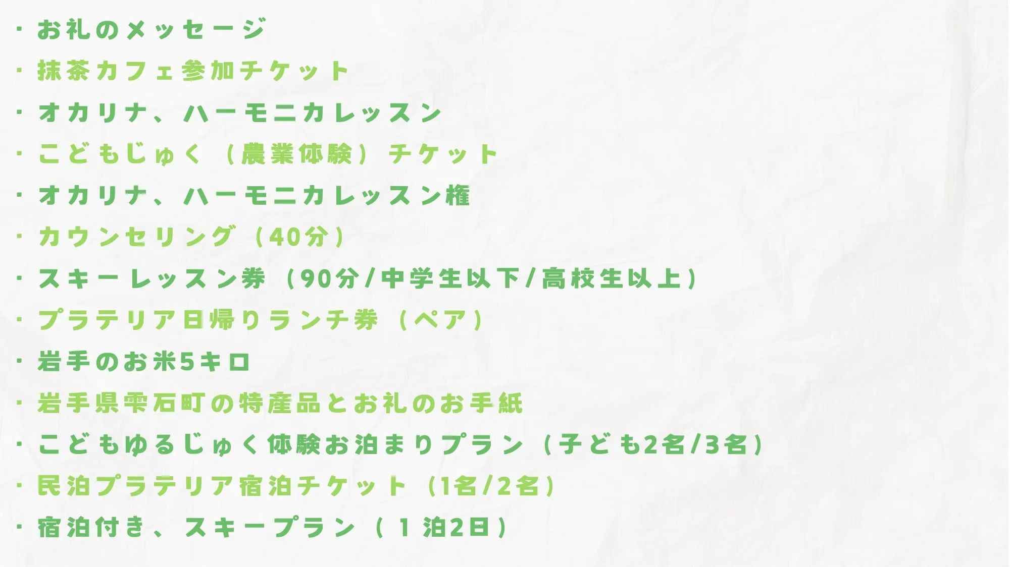 ② 農業体験や地元の食材を使った食事、自然散策ツアーや癒しのカウンセリングなどを提供し、訪れる方々に雫石町の魅力を存分に楽しんでもらえるようなプログラムを作り上げたいと思っています。