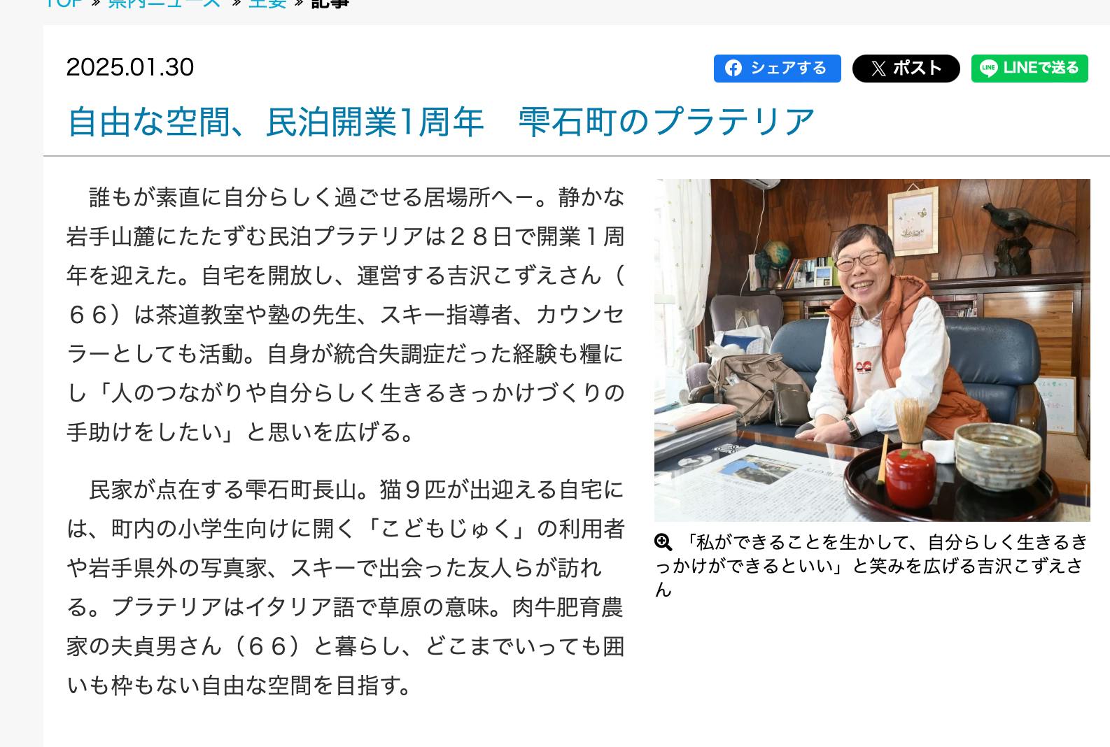 岩手県雫石町で民泊プラテリアを運営している、吉澤です。