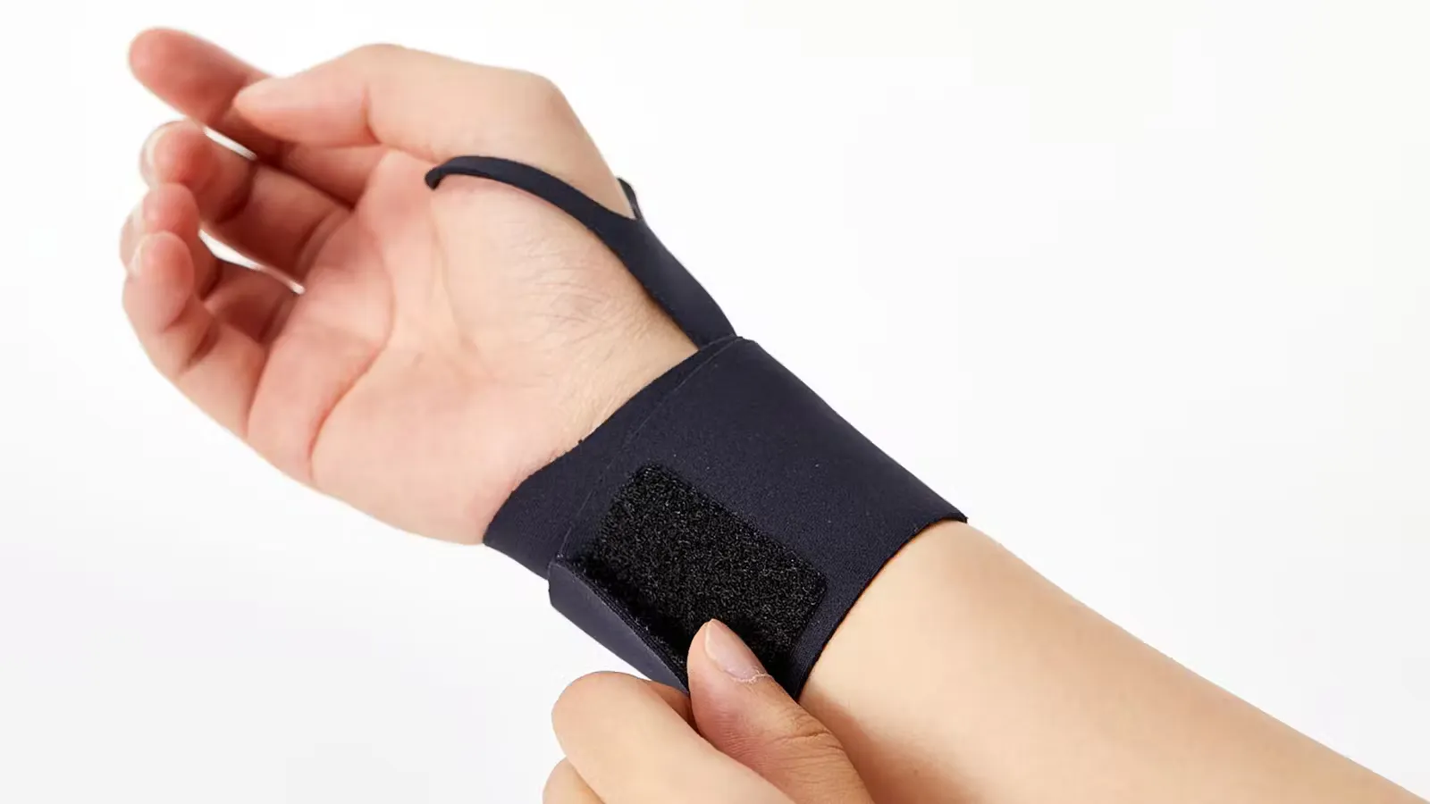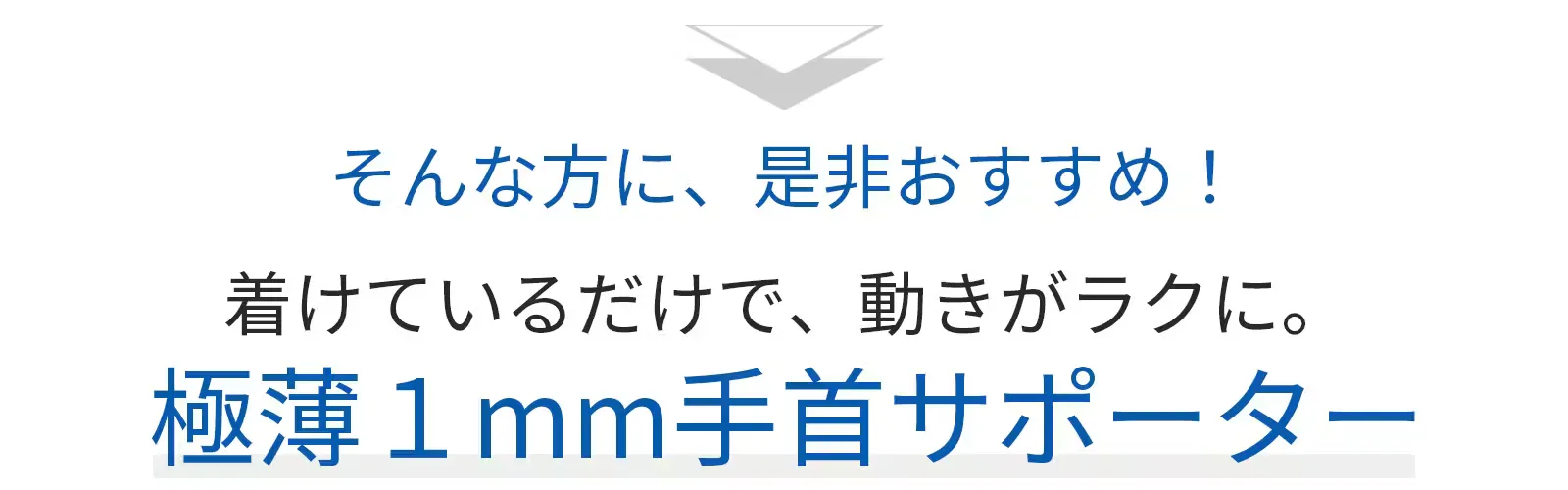 本製品は、毎日酷使し続けている手首をより自然にラクにサポートしたいという想いから開発されました。手首と親指を固定する「指サポーター一体型」で、わずか1㎜にもかかわらず、しっかりと手首を固定し、スムーズな動きをサポートします。