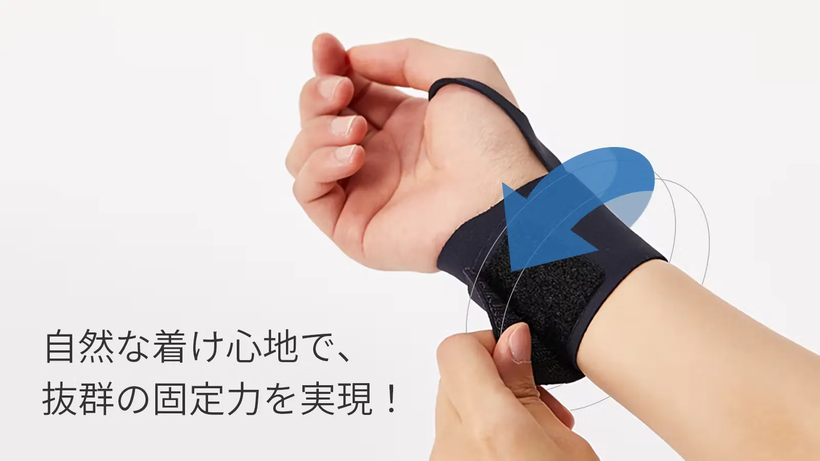 まるでテーピングのように、手首をしっかりと支え、動きをラクにサポートします。