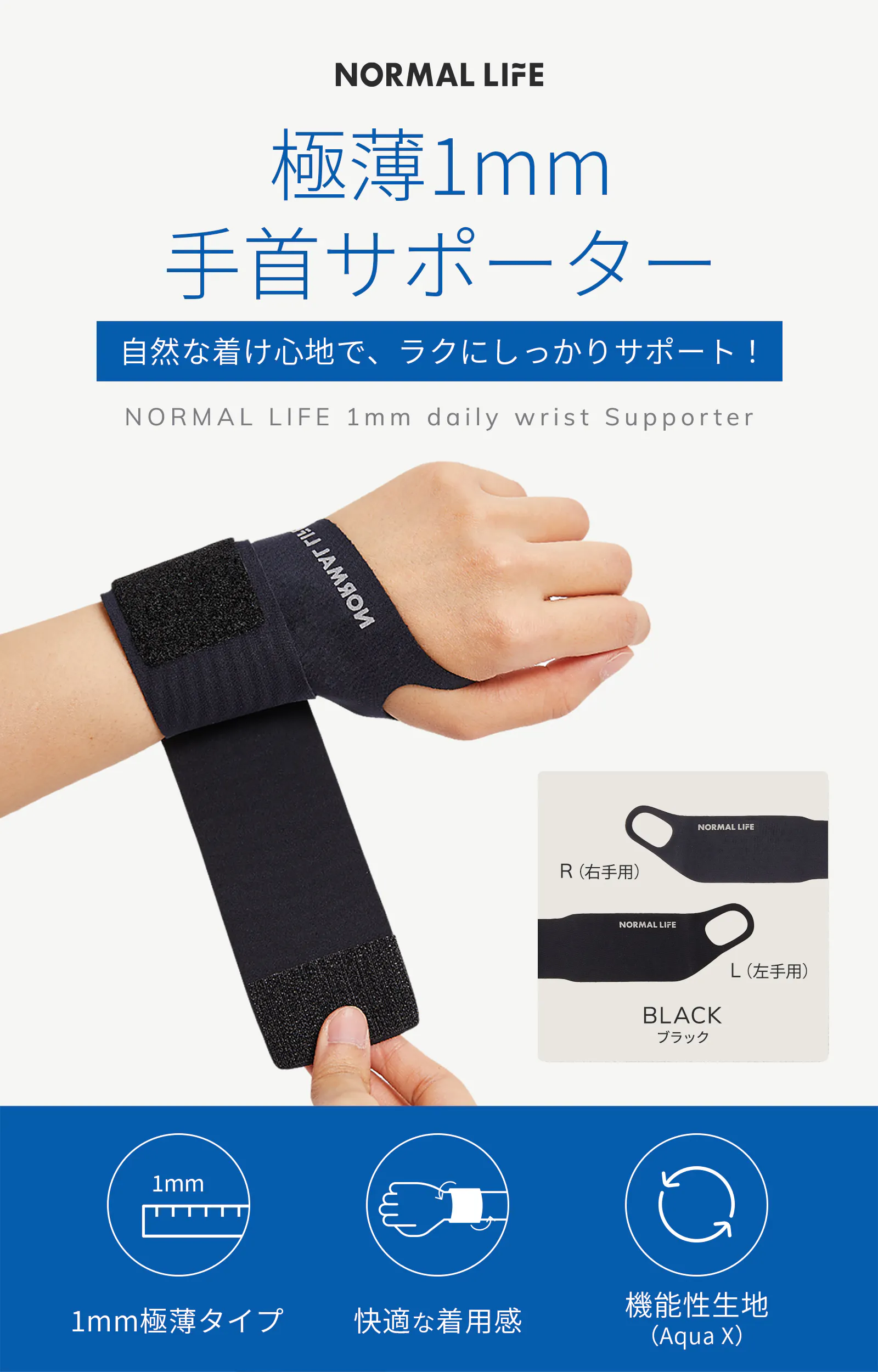 【商品名】NORMAL LIFE 極薄1mm daily 手首サポーター
