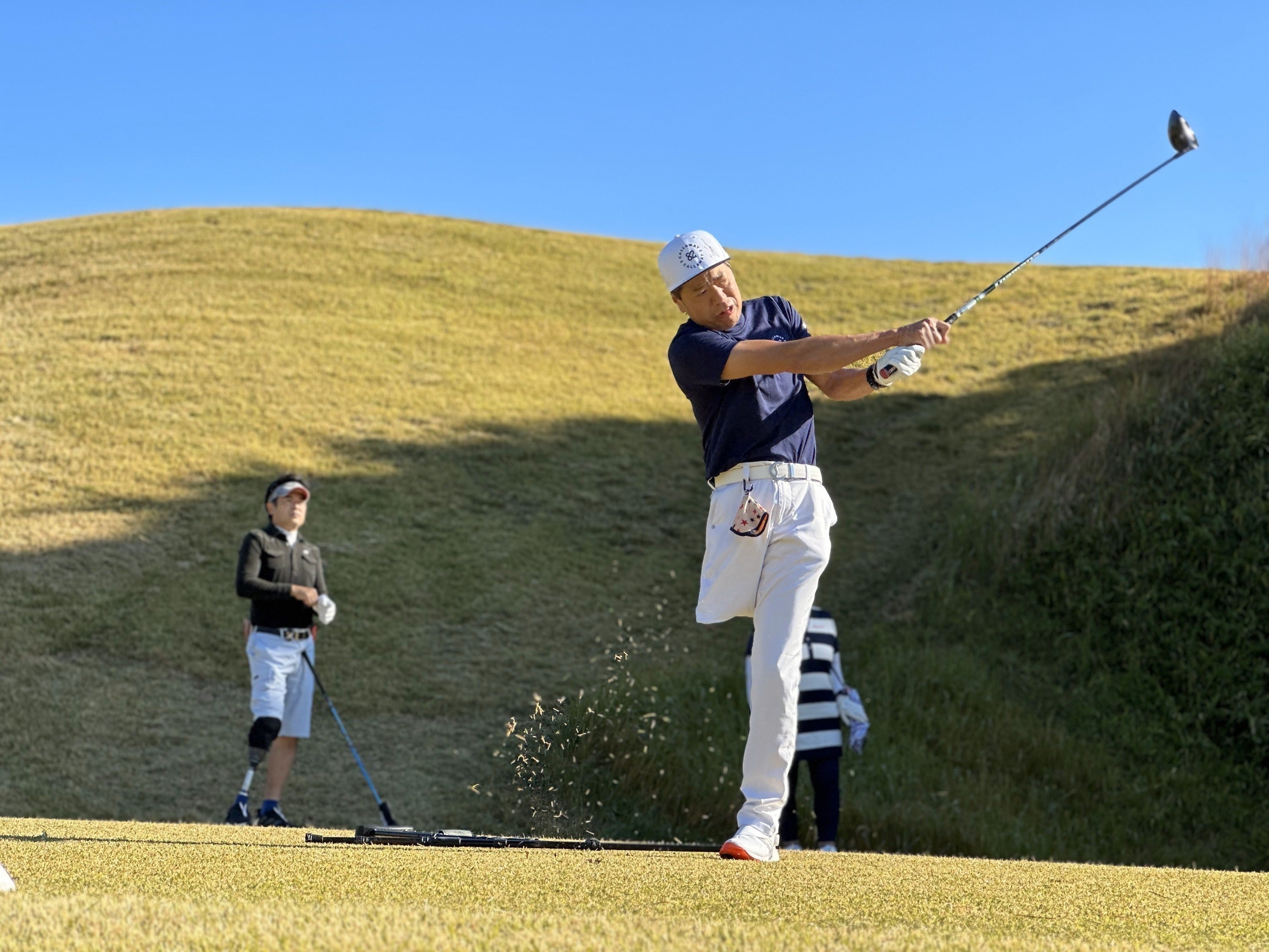 その大会に参加することを決め、片足でゴルフに再び挑戦しました。大会でのプレーを通じて、他の障がいを持つ方々と出会い、交流する機会も得ることができました。