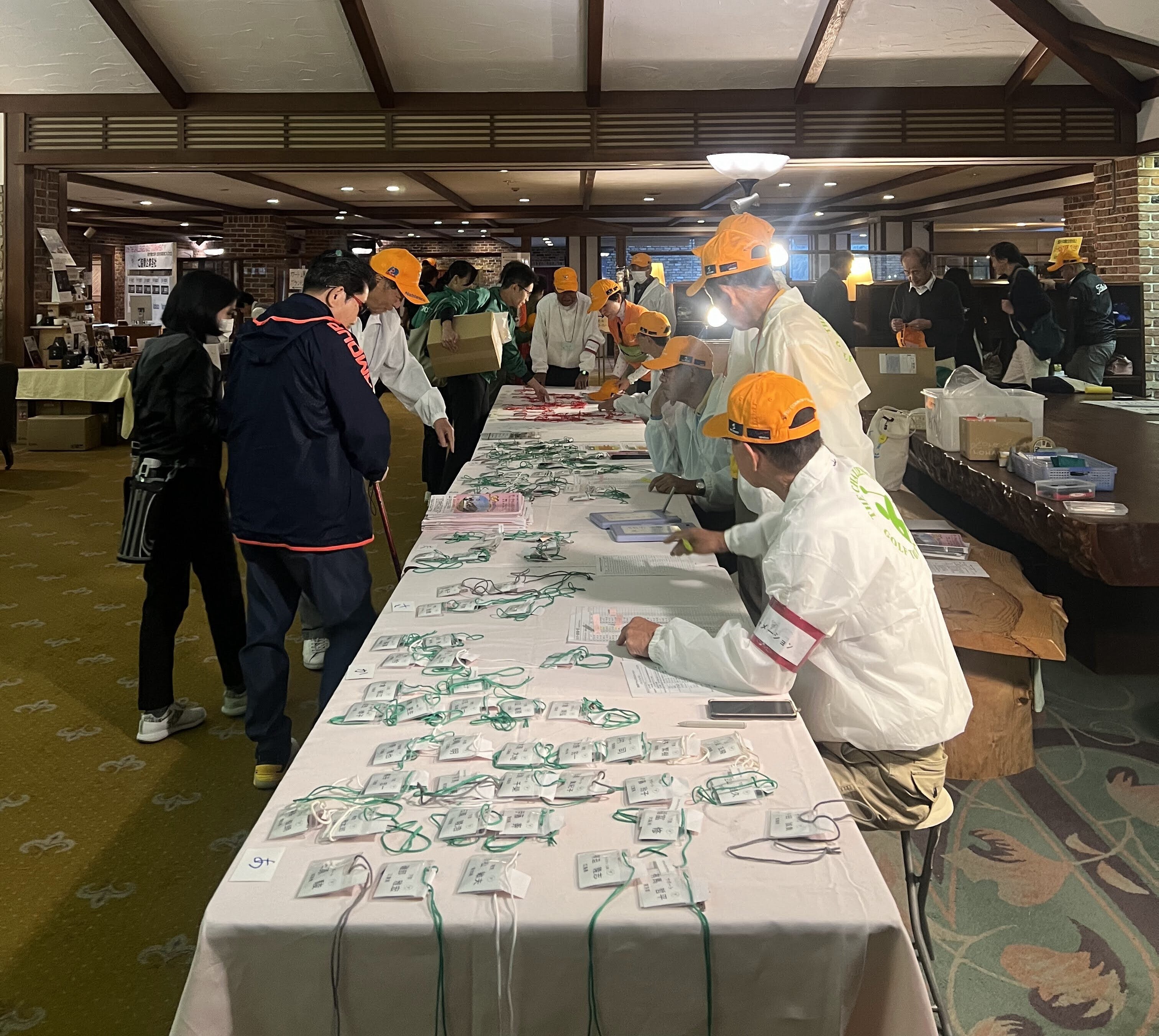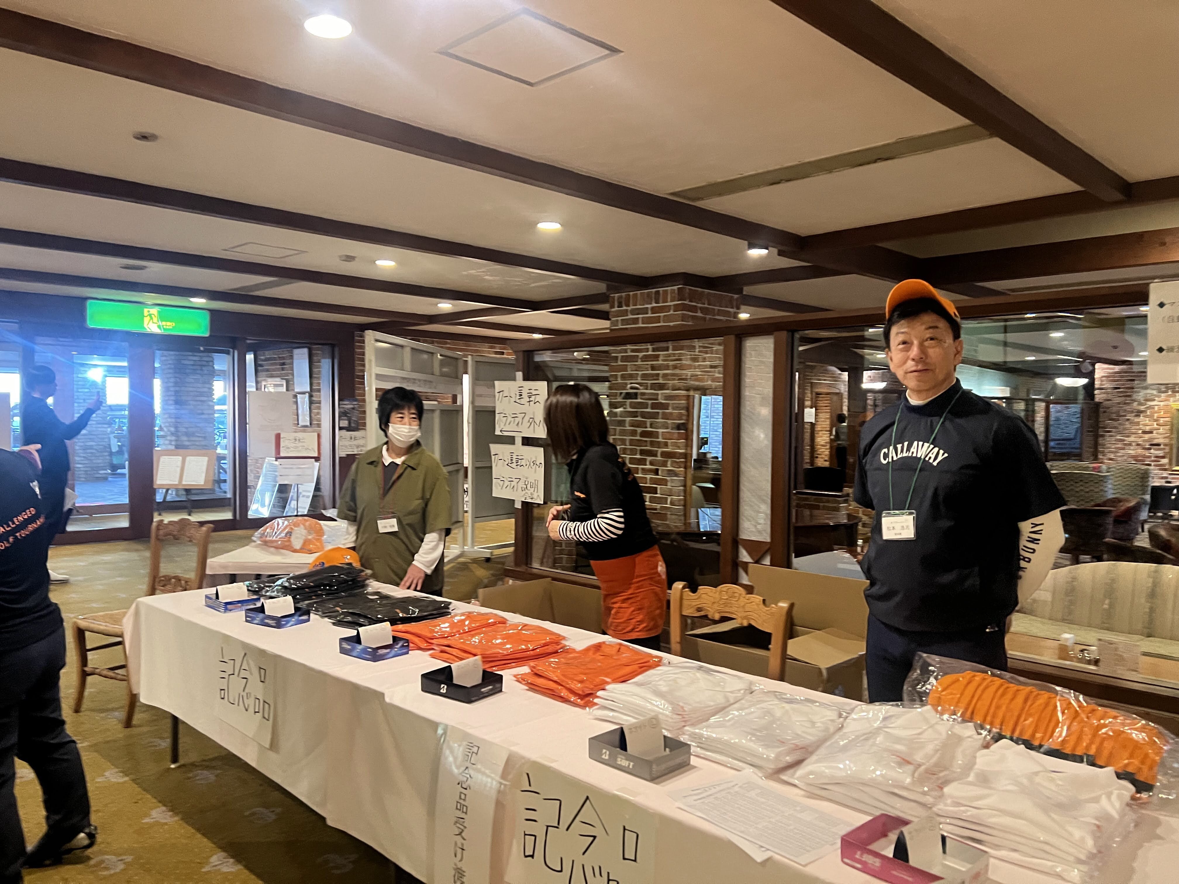6:30~ 受付 ボランティアの方が選手受付対応、参加賞のキャップとポロシャツをお渡し